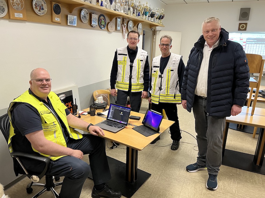 Wie bereits berichtet hat auch der Bürgermeister Daniel Hartmann die Einsatzkräfte am Feuerwehrgerätehaus Höxter aufgesucht, um sich über die Lage zu informieren und natürlich seinen Dank auszusprechen. Durch den Leiter der Feuerwehr Höxter konnte er sich einen Eindruck vermitteln lassen wie die Feuerwehr in solchen Lagen arbeitet und welche möglicherweise Verbesserungen solche Flächenlagen benötigen. Hier sagte er dem Team der Wehrführung um Jürgen Schmits mit seinen beiden Stellvertretern Michael Dierkes und Rainer Höppner seine Unterstützung zu, da auch er als Hauptverwaltungsbeamter die Notwendigkeit erkannt hat. Zeit fand er auch sich mit einigen Einsatzkräften des Löschzuges Höxter locker zu unterhalten und zeigte sich beeindruckt über die hohe Motivation aller. Dem Löschzugührer des Zuges 1 Steven Nobel und seinem Stellverteter Christoph Tegethoff hat er seinen Dank der Verwaltung und Politik natürlich stellvertretend für alle Einheiten der Einheiten im Gemeindegebiet übermittelt.