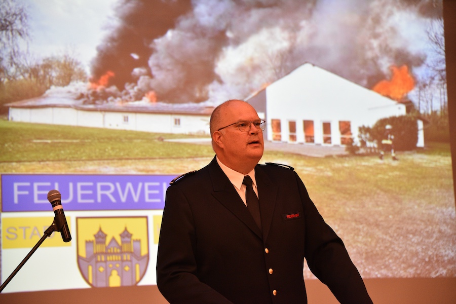 Nach dem Einparken standen sie festlich geschmückt alle nebeneinander vor dem Haupteingang des KWG aufgereiht, die zwei Hilfeleistungslöschfahrzeuge (HLF10), zwei Mannschaftstransportfahrzeuge und der sogenannte Wechsellader im Wert von mehr als einer Millionen Euro. Das sei gut investiertes Geld, wie Dezernatsleiter Stefan Fellmann während seiner Ansprache betonte, der die Weiterentwicklung der Feuerwehr sehr begrüße, weil sie zur Sicherheit der Bevölkerung beitrage. Als „klassische Arbeitstiere der Feuerwehr“ bezeichnete Fellmann die Hilfeleistungslöschfahrzeuge, die zum einen in Stahle und zum anderen in Ottbergen stationiert sind. Sie deckten eine große Bandbreite an Feuerwehreinsätzen ab: Hilfeleistungslöschfahrzeuge sind für ein umfangreiches Einsatzspektrum der Feuerwehr gedacht von der Brandbekämpfung bis hin zur technischen Hilfeleistung bei Unfällen und anderen Notfällen. Ihre Technik ist laut Wehrleiter Jürgen Schmits auf dem neuesten Stand.