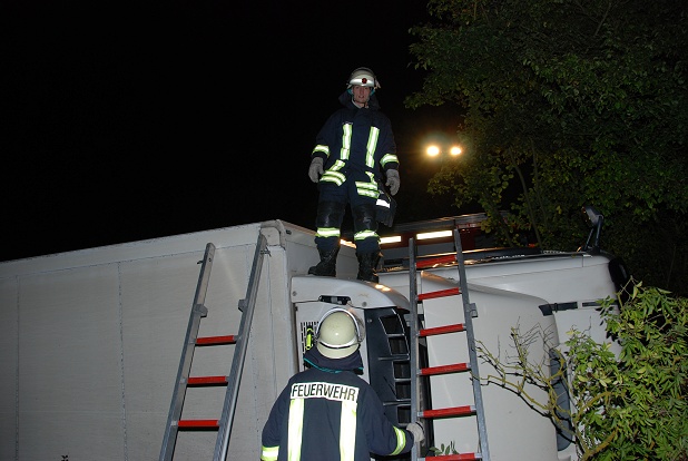 LKW-Fahrer ist nicht eingeklemmt, befindet sich aber in der Fahrerkabine und kann sich nicht selbst befreien