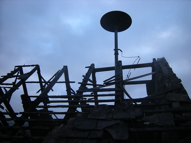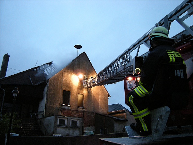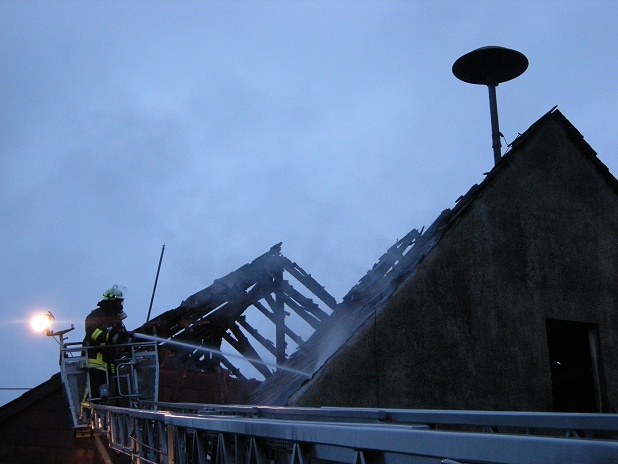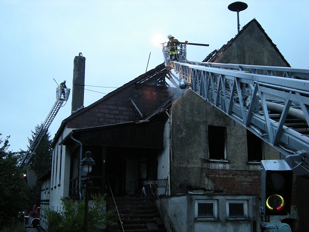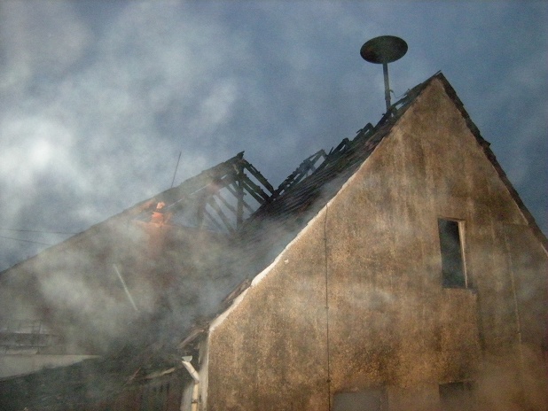 Dachstuhl eines ehemaligen Gasthauses steht im Vollbrand