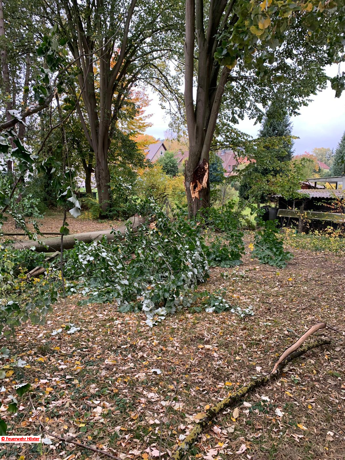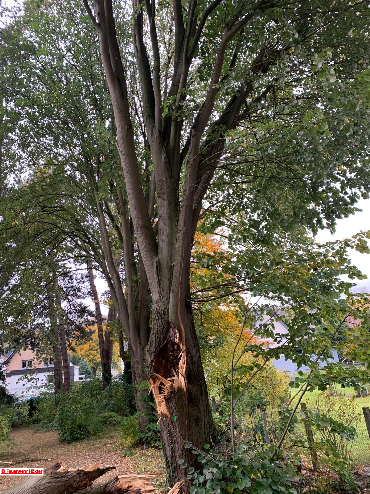 Baum bereits am Vortag durch Sturm beschädgt und teilweise auseinandergebrochen