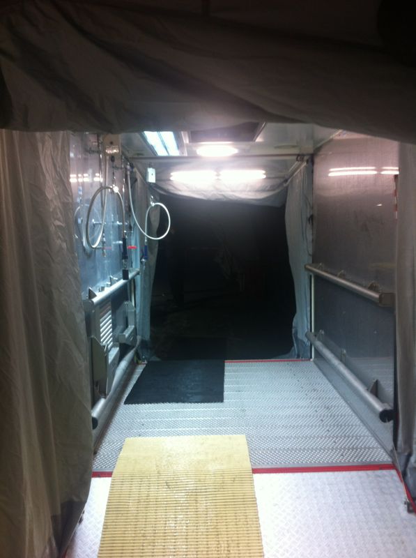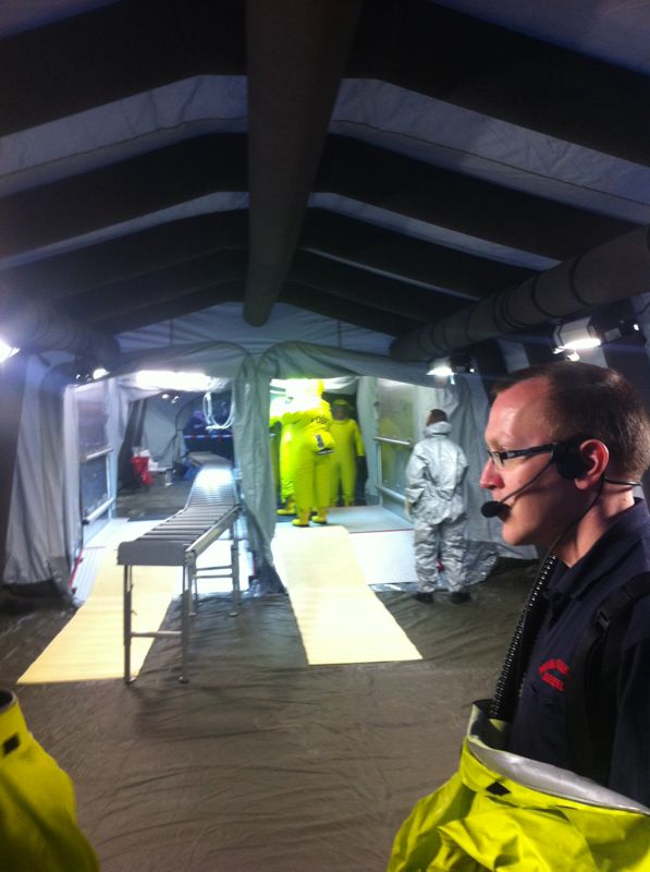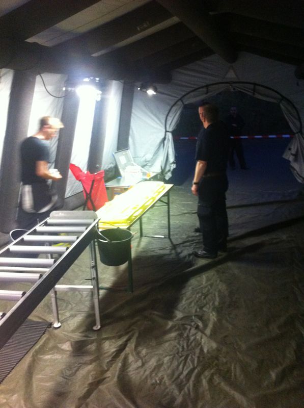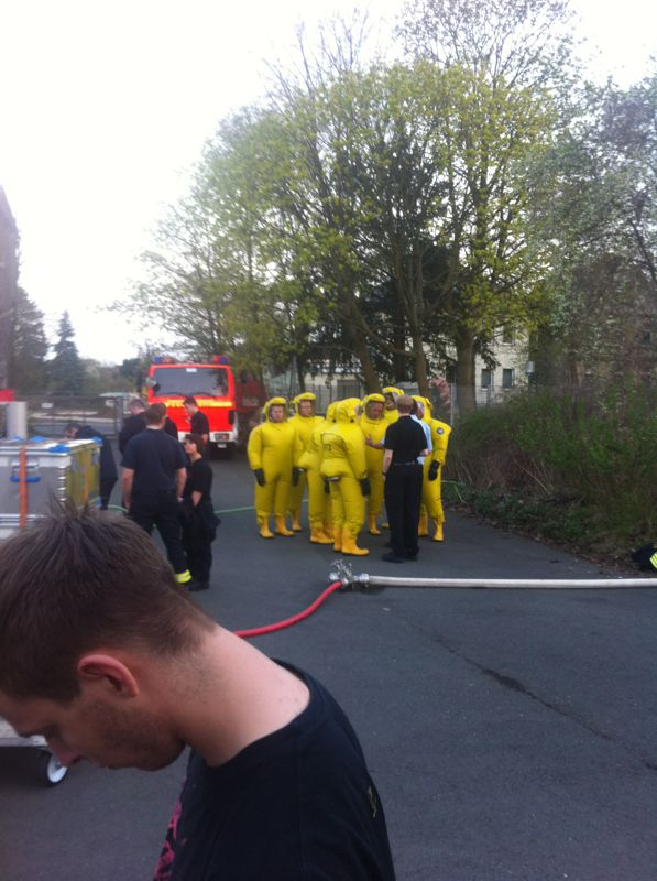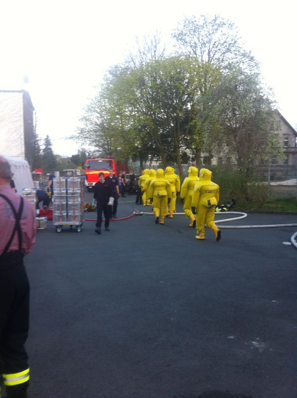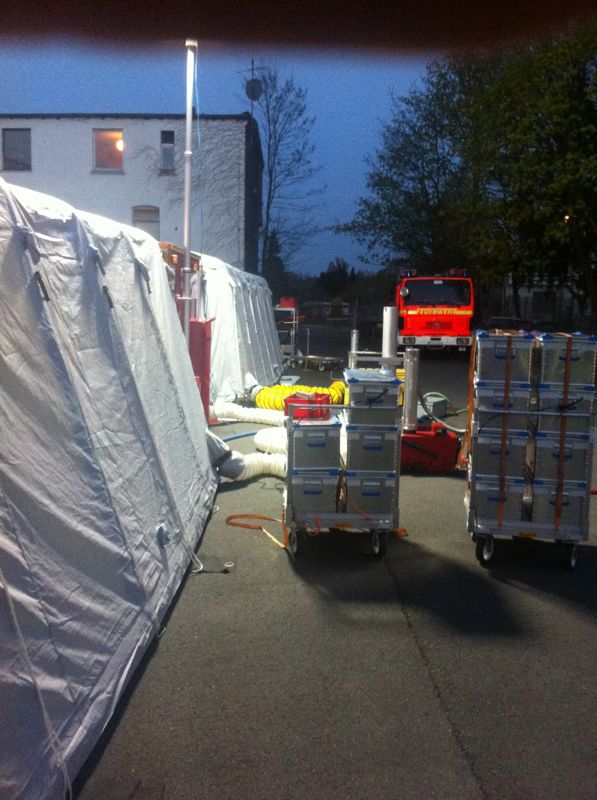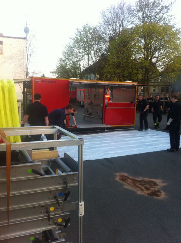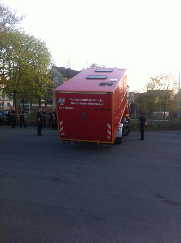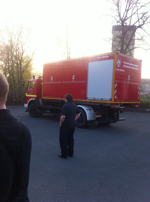 Bielefeld-Höxter / 25.04.2013 (TKu) Eine Delegation der Löschwasserversorgungskomponente Höxter hat sich auf nach Bielefeld gemacht, wo im Rahmen einer Übung der Abrollbehälter Dekon-V aufgebaut wurde. Das Land NRW wird auch für den Kreis Höxter einen Abrollcontainer Dekon-V beschaffen, der u.a. zukünftig von der Löschwasserversorgungskomponente Höxter betrieben werden soll. Zur Veranschaulichung wie genau ein Dekon-V errichtet wird, reisten die Kameraden aus Höxter nun nach Bielefeld. Dort hat die Berufsfeuerwehr Bielefeld in Zusammenarbeit mit der Freiwilligen Feuerwehr Bielefeld den Aufbau im Rahmen einer Übung peprobt.