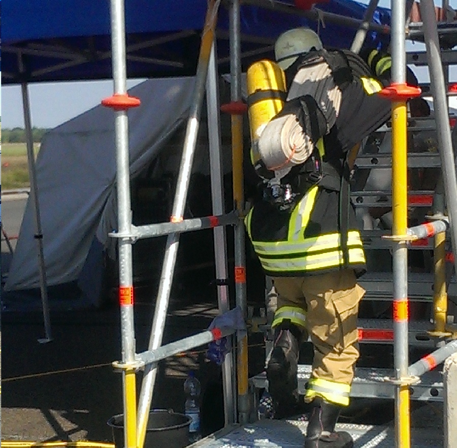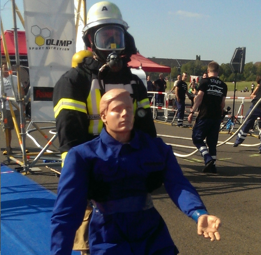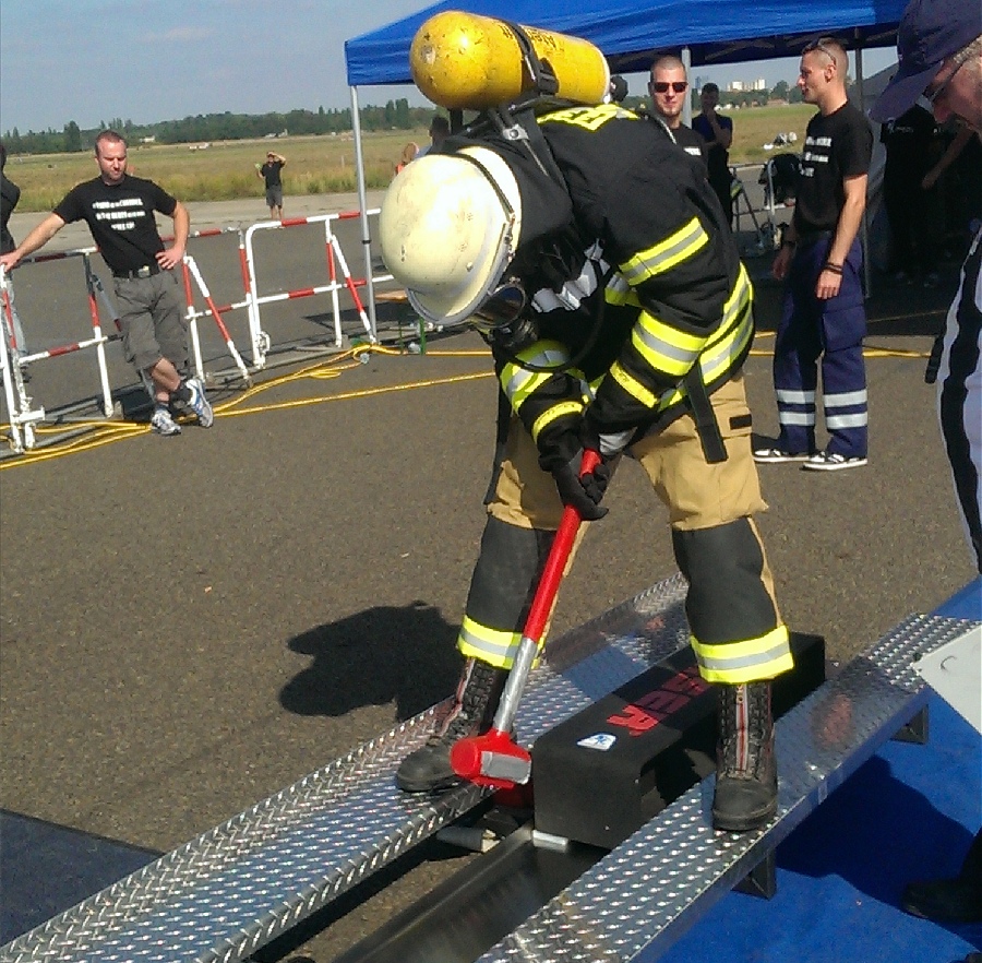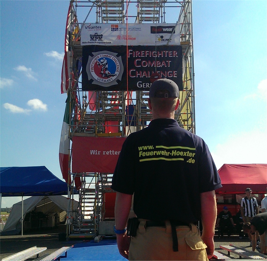 Berlin / 05.09.2013 (FCG/TKu) "Die Firefighter Combat Challenge ist ein Wettkampf, der außer dem puren Sport noch eine Absicht verfolgt: Es geht darum, einen der härtesten Jobs besser, schneller und sicherer zu machen. An dieser Challenge nahm nun Matthias Schmidt von der Löschwasserversorgungskomponente Höxter (Lwvk / KatS-Einheit) als einziger Teilnehmer aus dem Kreis Höxter teil. Die Firefighter Combat Challenge ist ein Wettkampf aus den USA, der an Power und Action nicht zu überbieten ist. Bei der Challenge wird ein Einsatz simuliert, vom Anfang, dem Schlauch zur Einsatzstelle tragen, bis zum Schluss, die Menschenrettung. Dabei ist die gesamte feuerwehrtechnische Einsatzkleidung mit angeschlossenem Preßluftatmer zu tragen.