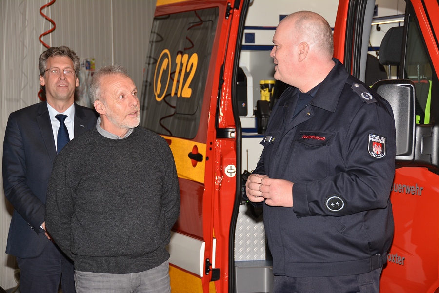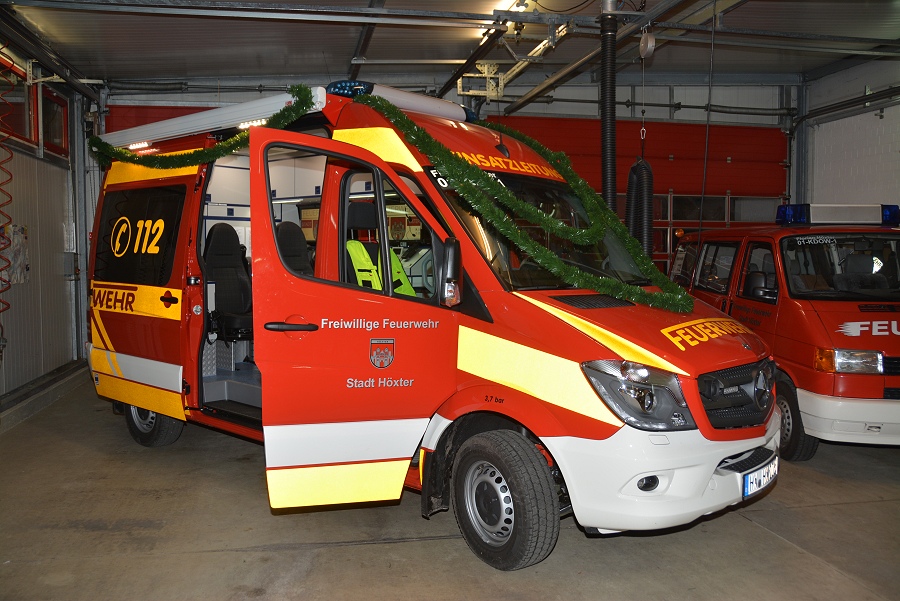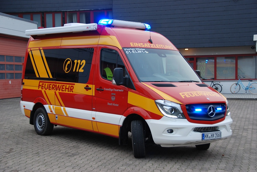 Der neue professionell ausgebaute und 163-PS starke ELW-1 ist für die Feuerwehr ein sehr wichtiges Führungsmittel bei der Bewältigung von mittleren bis zu größeren Schadenslagen. Er dient in erster Linie der Kommunikation zwischen den Führungskräften und anderen Organisationen. Im Inneren des Mercedes-Sprinters befinden sich zwei Funk- und PC-Arbeitsplätze sowie verschiedene weitere Kommunikationsmittel wie Faxgerät oder Telefon. "Nach langen intensiven Planungen und Gesprächen mit dem Fahrzeugaufbauhersteller wurde ein Konzept zur Gestaltung des eigenen Bedarfes erstellt. Nach einer Ausschreibung im vergangenen Jahr ging der Zuschlag an das Unternehmen GSF in Twist im Emsland", sagte Fachbereichsleiter Stefan Fellmann bei der Fahrzeugübergabe im Feuerwehrgerätehaus Höxter.