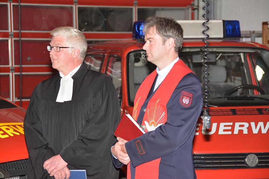 In enger Zusammenarbeit wurden hier auch während des Aufbaus noch verschiedene Ideen eingebracht, die den Einsatzwert des Fahrzeuges steigern, sagte Stadtbrandinspektor Jürgen Schmits. Fellmann dankte allen, die an der Umsetzung des Projektes "ELW-1" in ihrer Freizeit mitgewirkt haben. Ganz besonders aber dankte Stadtbrandinspektor Schmits dem Sachbearbeiter für den Feuerschutz, Jürgen Kollasch und seinen Kameraden Steven Noble und Philipp Zimmermann, die sich für den Einsatzleitwagen in hohem Maße eingesetzt haben. Die Gesamtkosten für Fahrgestell sowie Funk- und EDV-Ausstattung bezifferte Fachbereichsleiter Stefan Fellmann auf mehr als 112.000 Euro. Pastor Tobias Spittmann und Pfarrer Dieter Maletz segneten im Beisein von zahlreichen Gästen und Feuerwehrkameraden den Einsatzleitwagen, der nicht nur dem Löschzug Höxter sondern allen Löschgruppen im Stadtgebiet Höxter als Führungsmittel dienen soll.