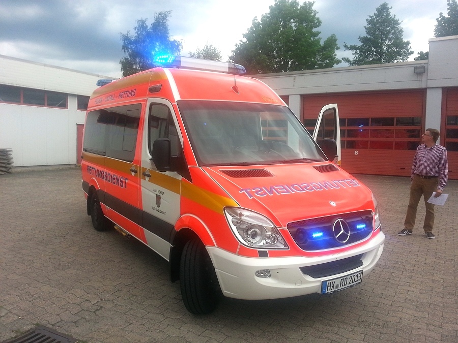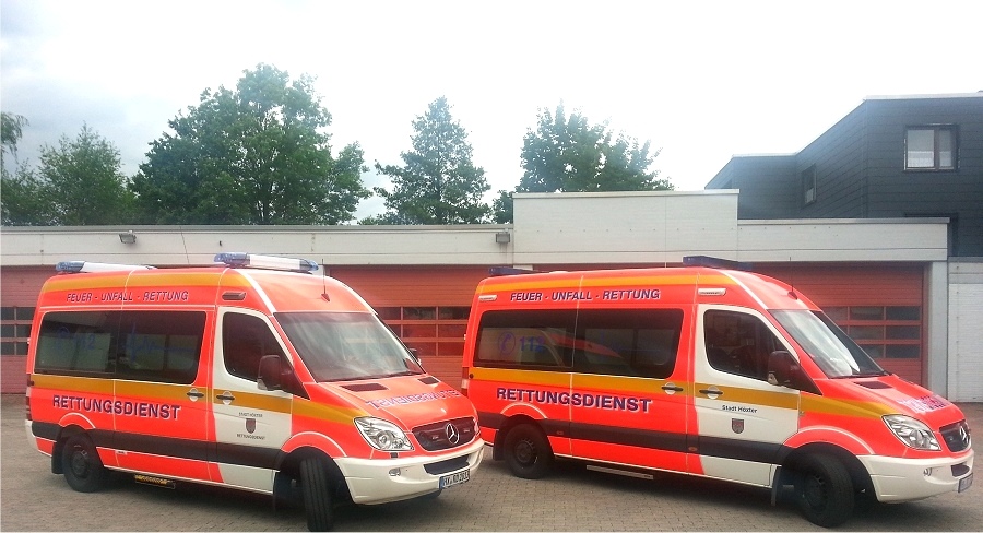 Höxter / 13.06.2013 (TKu) Als Ersatz für den 10 Jahre alten Krankentransportwagen (KTW2) auf VW-Transporter-Basis (T4-Syncro) hat die Stadt Höxter nun ein neues Fahrzeug beschafft. Bei dem Fahrzeug handelt es sich um einen KTW-B auf Mercedes-Sprinter-Fahrgestell (316 CDI) als Basisfahrzeug mit Hochdach. Der Aufbau, die Innenausstattung sowie die Beklebung des Fahrzeuges wurde von der Firma WAS aus Wietmarschen gefertigt. Die Ausstattung entspricht der Normausstattung für Krankentransportfahrzeuge nach Europa-Norm EN 1789 KTW Typ B. Der neue KTW wurde nun vom Hersteller abgeholt und muss in den nächsten Tagen und Wochen noch einsatzbereit gemacht werden. Die Ausstattung und das Design wurde dem bereits im Dienst befindlichen KTW-1-B angepasst.