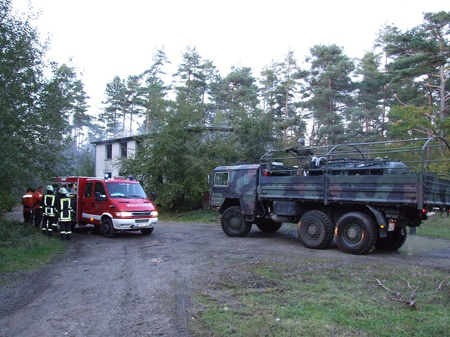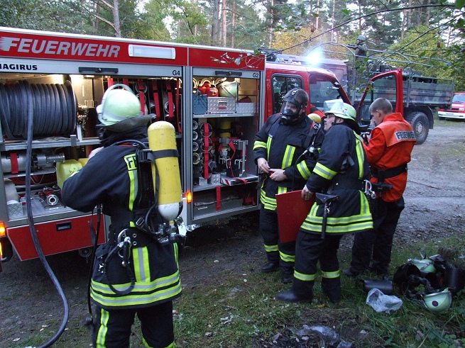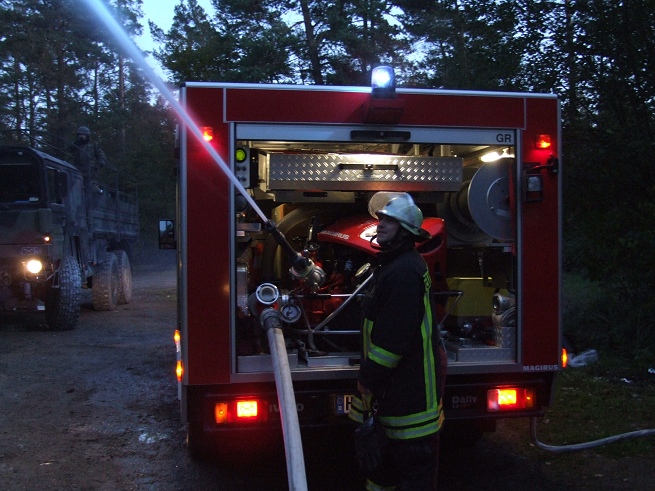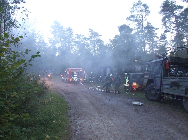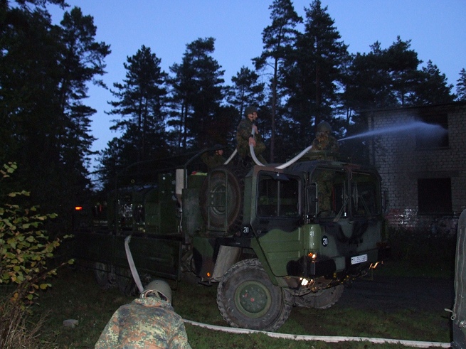 Die Übung mit der Löschgruppe Albaxen fand jedoch auf dem Bielenberg im militärischen Übungsgelände „Heygendorf“ statt. Angenommen wurde ein Brand in einem Mehrfamilienwohnhaus, bei dem noch eine Person als vermisst galt. Die Menschenrettung unter Atemschutz nahm die Löschgruppe Albaxen vor, ebenfalls die Brandbekämpfung mit einem C-Rohr im Innenangriff. Als Wasserversorgung dienten zwei Spezialfahrzeuge des ABC-Abwehrbataillons mit je 3000 Liter Wasservorrat. Die Bundeswehr nahm insgesamt zwei C-Rohre vor. Unter der Leitung von Stadtbrandinspektor Norbert Rode funktionierte die Zusammenarbeit zwischen Feuerwehr und Bundeswehr einwandfrei.