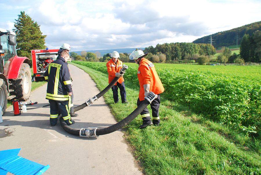 Albaxen / 11.10.2014 (TKu). Einen Übungsmarathon absolvierte die Löschgruppe Albaxen einen Samstag lang mit den aktiven Kameraden der Löschgruppe mit dem Ziel, möglichst viel Erfahrung daraus zu gewinnen und die Zusammenarbeit auf ein hohes Maß zu verbessern. Andreas Rode und Fritz Meyer aus Albaxen haben den Übungstag für ihre Kameraden ausgearbeitet. Die Positionen wurden während der Übungen mehrfach gewechselt. Um erfahrenen Unterbrandmeistern oder Feuerwehrmännern auch mal die Gelegenheit zu geben, Gruppenführer zu sein und dabei selbst Verantwortung zu tragen, wechselte diese Position ebenfalls.