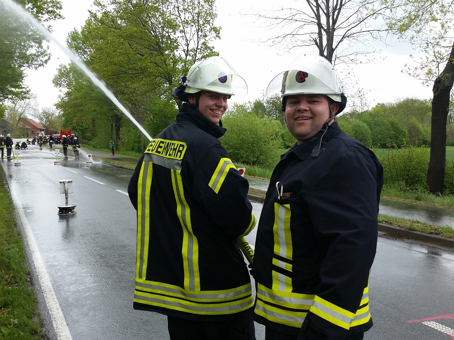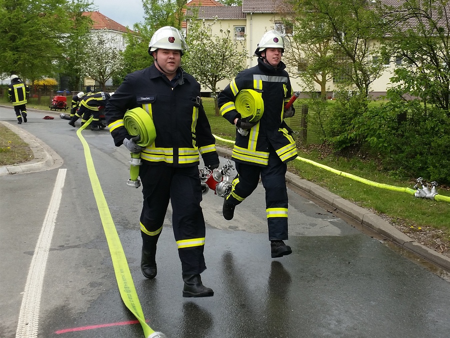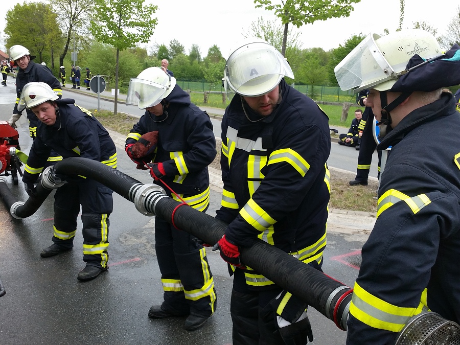 Lütgeneder / 09.05.2015 (TKu). Die Leistungswettkämpfe sind die alljährliche Begegnung der Wehren im Kreis Höxter miteinander, wo sie besonders auch ihre Teamfähigkeit unter Beweis stellen können. An den Leistungswettkämpfen des Kreises Höxter in Papenhöfen am 25. April und in Lütgeneder am 09. Mai haben wieder Kameraden aus dem Stadtgebiet Höxter mit Erfolg teilgenommen. Zuvor wurde natürlich geübt, was das Zeug hält. Die Löschgruppe Albaxen (Fotos) stellte eine gemeinsame Gruppe mit der Löschgruppe Stahle im Verhältnis 7:2. Man sieht, das es funktioniert und es beweist: "Wir bei der Feuerwehr Höxter sind ein Team!" - und das beim Löschangriff, beim Erste-Hilfe-Teil sowie bei den feuerwehrtechnischen Fragen und bei den Knoten und Stichen.