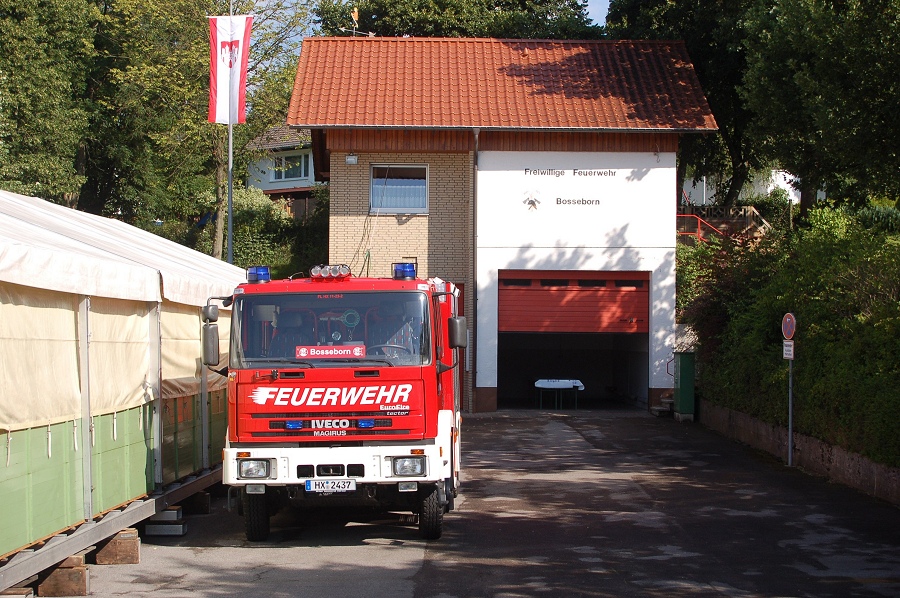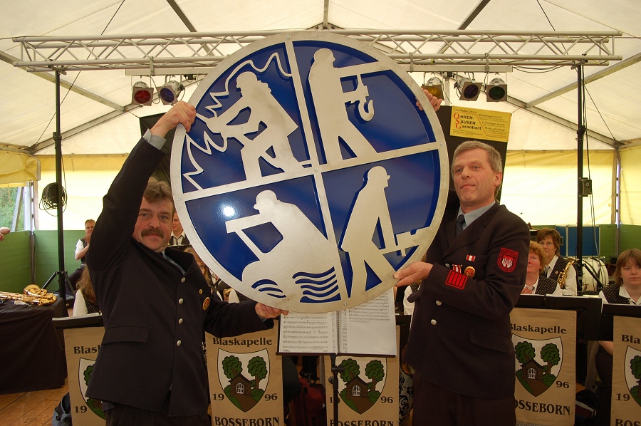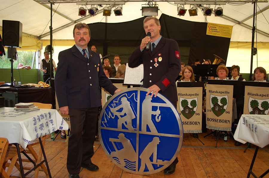 Bosseborn / 07. bis 08.06.2007 (TKu) Mit einem fröhlichen Sommerfest feierte die Löschgruppe Bosseborn am vergangenen Wochenende ihr 80-jähriges Bestehen. Zahlreiche Gäste waren der Einladung der Löschgruppe gefolgt und ließen das Festzelt am Samstag Abend zu den Klängen von DJ Markus und Markus beben. Im Anschluss an die Kranzniederlegung am Ehrenmal in Bosseborn am Sonntag Morgen ging man zum Frühschoppen über, der musikalisch von der Blaskapelle Bosseborn und dem Männergesangverein Cäcilia Bosseborn umrahmt wurde.