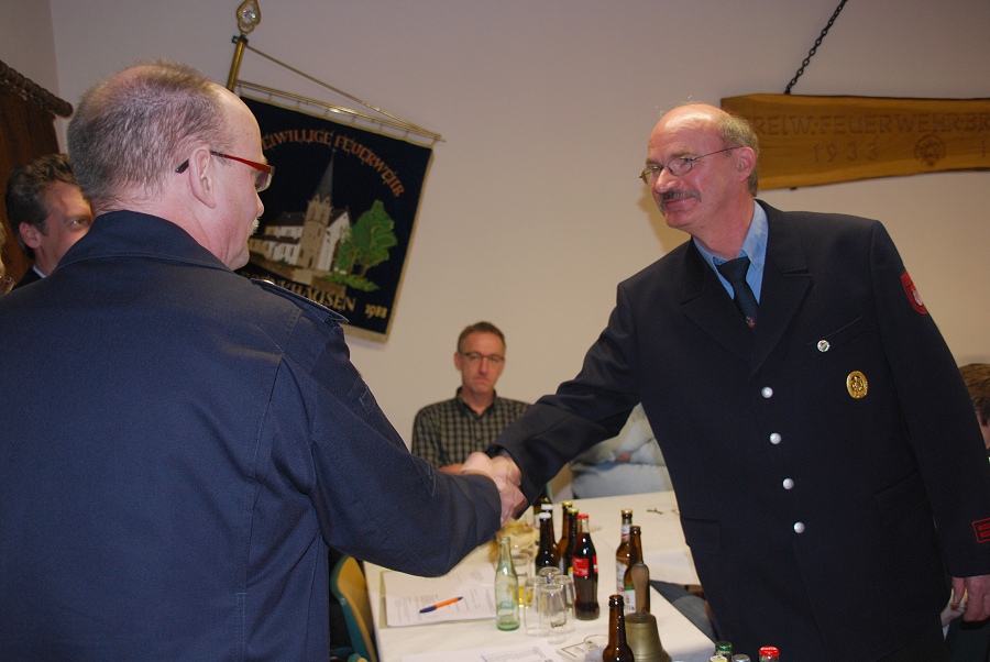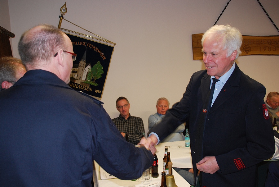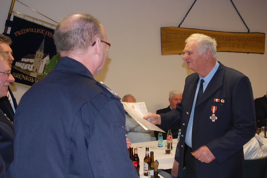 Im Anschluss an die Ehrungen wurden die Oberfeuerwehrmänner Hans-Werner Zimmermann und Friedhelm Rothen sowie der Hauptfeuerwehrmann Wilhelm Elvert mit Erreichen der Altersgrenze aus dem aktiven Dienst verabschiedet und in die Ehrenabteilung überstellt. Stadtbrandinspektor Albert Henne dankte ihnen für ihre aktive Tätigkeit. Das Leistungsabzeichen der Sonderstufe in Gold auf rotem Grund wurde an den Hauptfeuerwehrmann Jürgen Drenker verliehen. Das Goldabzeichen erhielt Hauptfeuerwehrmann Daniel Stieneke und Bronze ging an den Feuerwehrmann Michael Graßhoff. Als neuer Schriftwart konnte der Oberfeuerwehrmann Olaf Markus ins Amt gewählt werden. Er übernimmt das Amt von Hauptfeuerwehrmann Martin Drüke, der im vergangenen Jahr plötzlich und unerwartet verstorben ist. Bei einem kurzen Jahresrückblick stellte Löschgruppenführer Georg Drüke fest, dass es ein sehr ruhiges Einsatzjahr 2012 für die Löschgruppe Brenkhausen gewesen ist. Nur sieben Alarme verzeichnete die Wehr im Berichtsjahr. Für immer unvergessen bleiben wird wohl aber der Flugzeugabsturz auf dem Räuschenberg mit sechs Verletzten am 21. Oktober 2012. Die Einsätze gliedern sich im einzelnen in einen Flugunfall, vier Technische Hilfeleistungen nach Verkehrsunfall, einen Kaminbrand sowie eine Alarmübung am St. Ansgar Krankenhaus Höxter.
