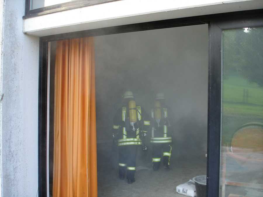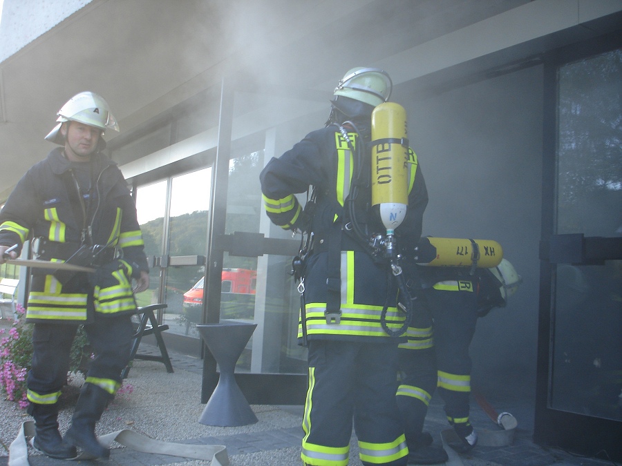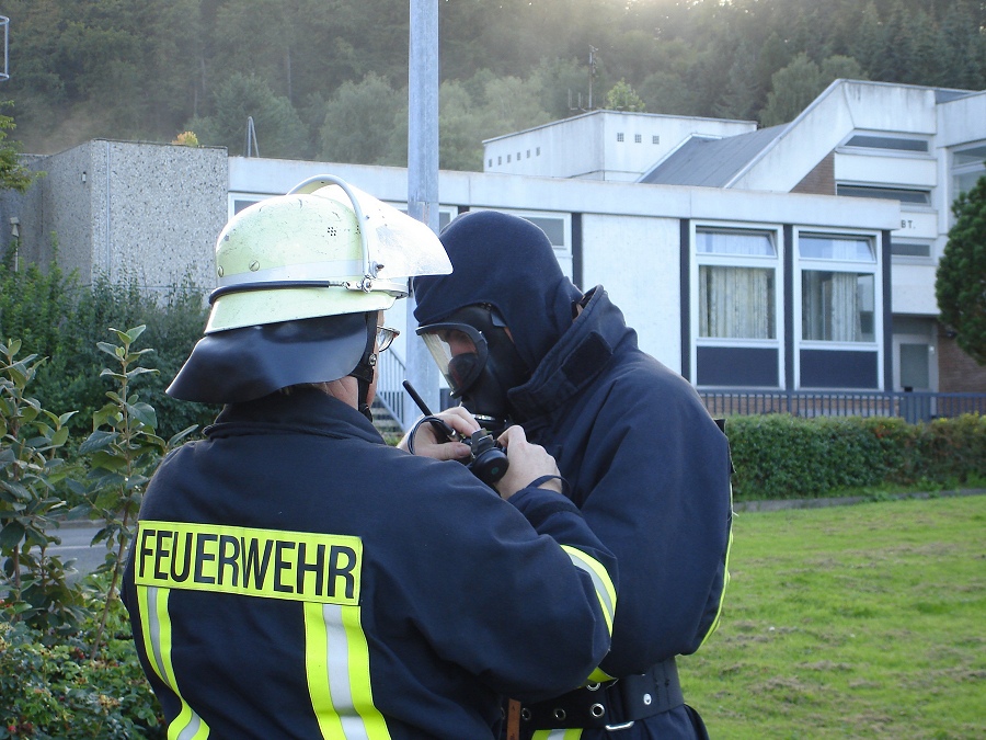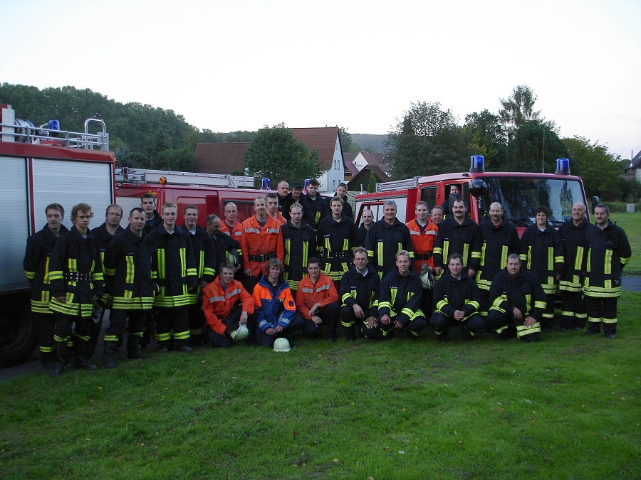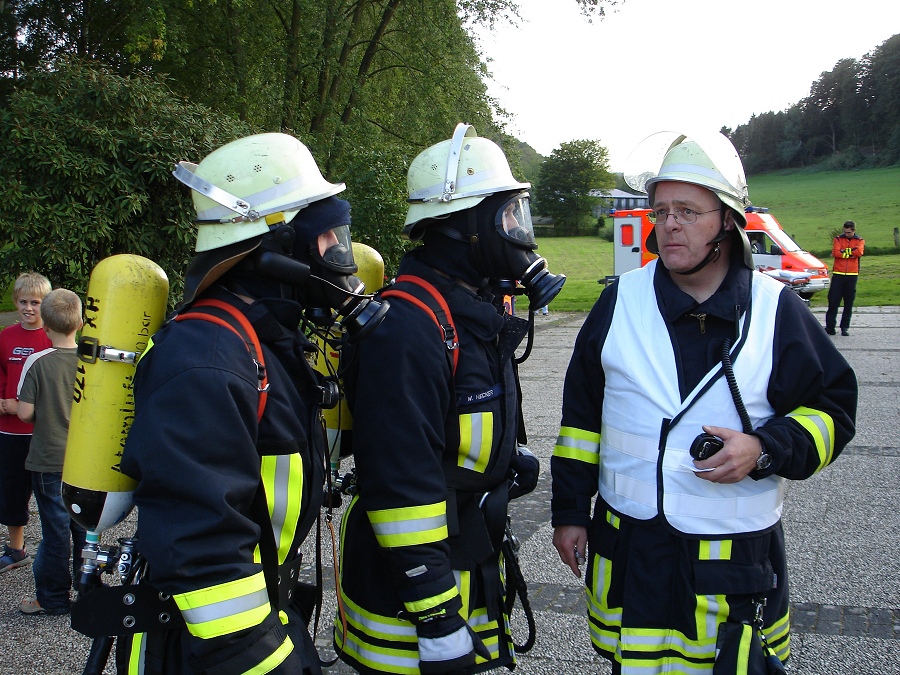 Um die vermissten Personen in dem dichten Qualm schnell zu finden, setzten sie auch eine Wärmebildkamera, die schon auf Körperwärme reagiert, im Innenangriff ein. Etwa 12 Minuten nach dem Eintreffen der Feuerwehr wurden die zwei vermissten Kinder gefunden und dem Rettungsdienst Höxter übergeben. Der vermeintliche Brand konnte mit den drei vorgenommenen C-Rohren gelöscht werden. Als Wasserentnahmestelle diente ein Unterflurhydrant sowie ein nahegelegener Teich. 34 Feuerwehrleute des Löschzuges 5 waren unter der Leitung von Wehrführer Stefan Dickel an dieser Übung beteiligt. Zugführer Franz-Josef Potthast zog in der anschließenden Nachbesprechung der Übung ein positives Resümee.