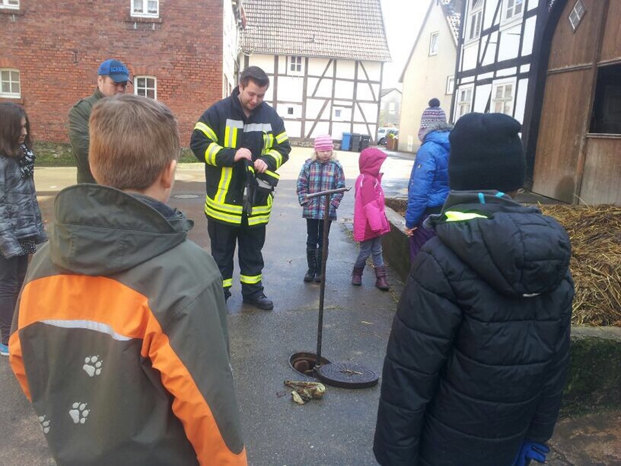 Gemeinsam mit den Kindern hat Marcel Hirsch dann einen Hydranten mit einem Standrohr angezapft und erklärt wie man ihn winterfest macht. Anschließend erklärte Marcel Ide den Kindern das Einsatzfahrzeug samt seiner Ausrüstung und die Kinder hörten gespannt zu. Mit einem Grillen endete dieser spannende Ferien-Nachmittag am Feuerwehrgerätehaus Bruchhausen. Bleibt zu hoffen, dass viele Kinder dem Aufruf folgen und in der Jugendfeuerwehr Mitglied werden.