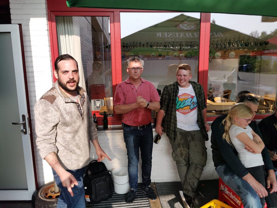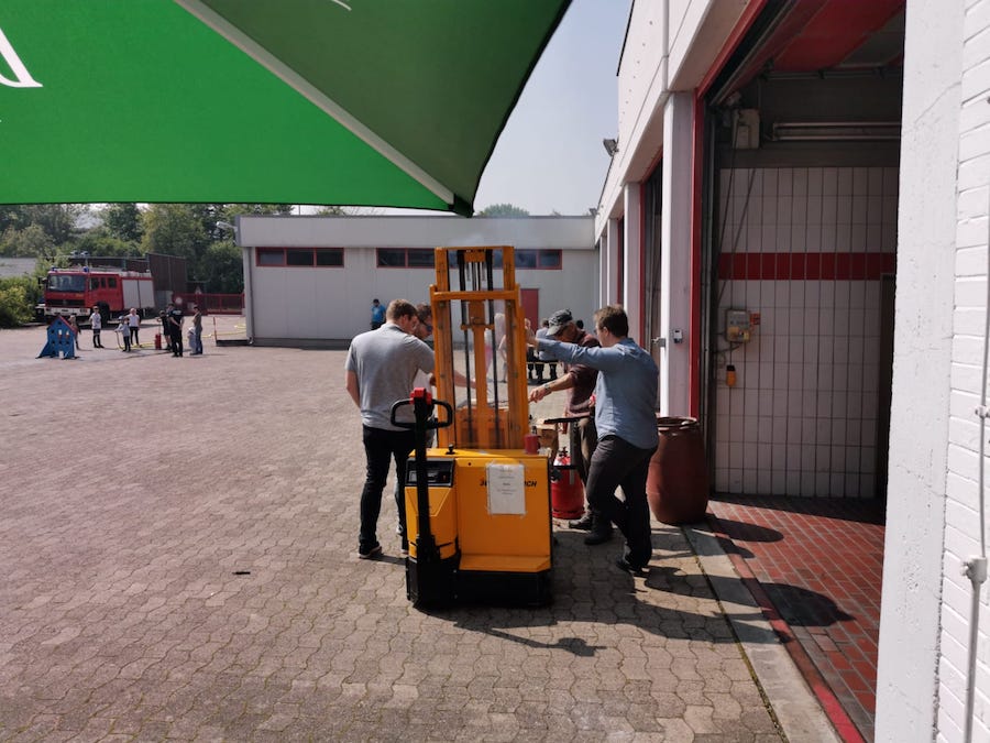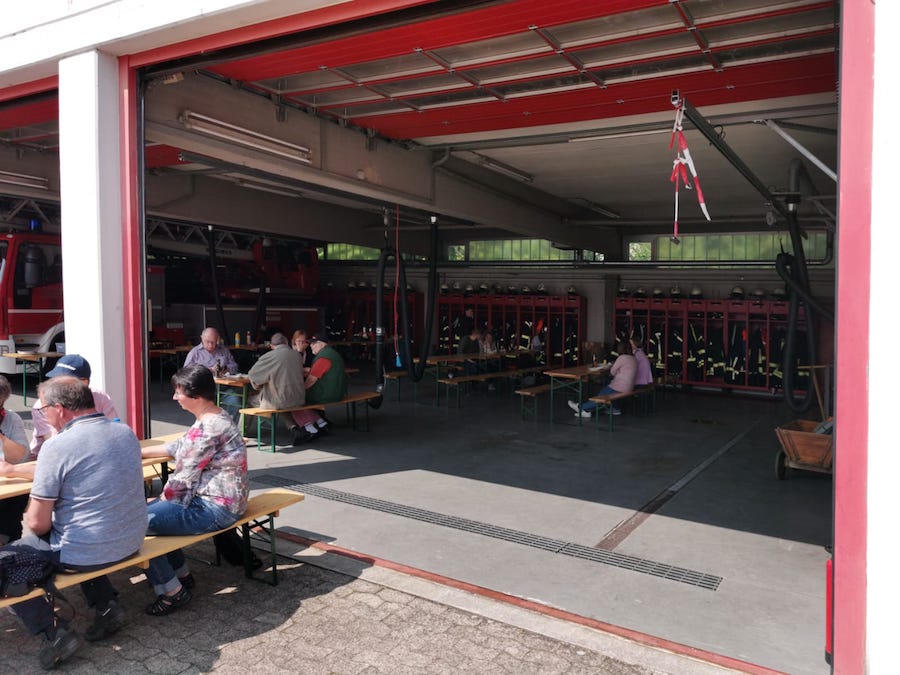 Nach der Stärkung ging es dann weiter. Der Weg führte durch Godelheim in Richtung Taubenborn und von dort aus nach Höxter und zurück zum Gerätehaus. Das Wetter für den Tag war auch mehr als perfekt. Am Gerätehaus angekommen wurde der Grill schon in Gang gesetzt. Beim gemütlichen Umtrunk und netten Gesprächen fühlten sich sichtlich alle wohl. Auch die Kinder hatten viel Spaß. Für diese wurde eine Kübelspritze auf dem Hof positioniert und das kleine Brandhaus, wo mit Hilfe des Wasserstrahls die dargestellten brennenden Türen umklappen, wenn diese getroffen werden. Auch das ein oder andere Kind und Erwachsener wurde dabei nass. Das warme Wetter und der Sonnenschein sorgten für eine rasche Trocknung. Zur späteren Stunde hatten sich bereits einige Verabschiedet und andere nutzen noch das frohe beisammen sein.