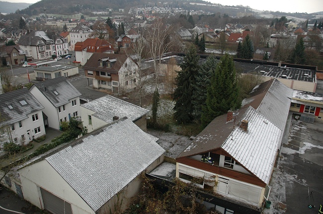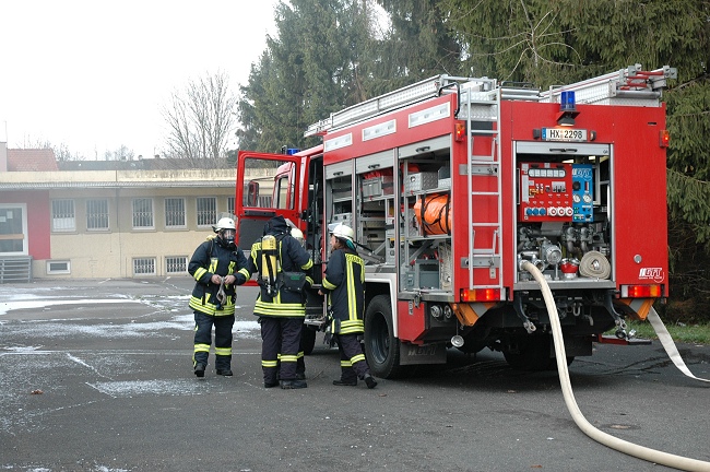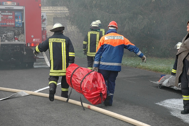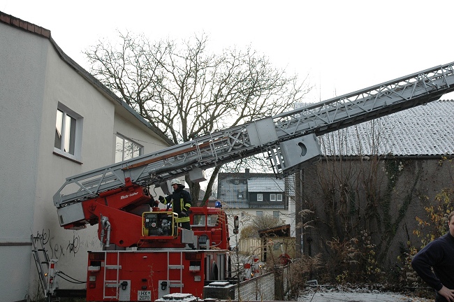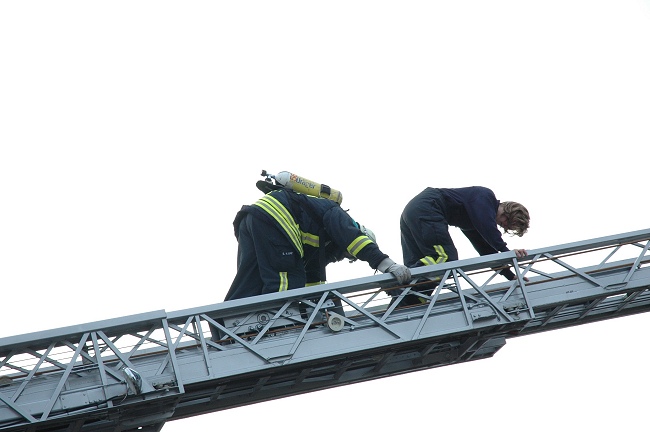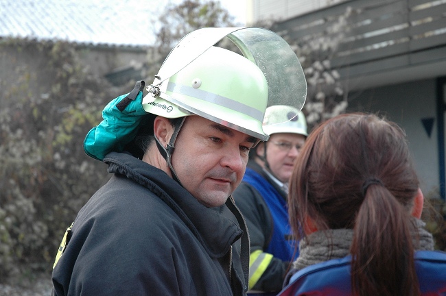 Höxter / 27.11.2010 (TKu) Dramatische Szenen spielten sich kürzlich in der ehemaligen Schuhfabrik Schröder in der Twiete in Höxter ab: Die ehemalige Schuhfabrik soll im Vollbrand stehen, mehrere Personen befinden sich noch im Gebäude. Auf dem Balkon der Wohnung im ersten Obergeschoss über der Fabrik steht eine ältere Frau und ruft um Hilfe, hinter ihr dringt dichter Rauch aus dem Gebäude. Ihr bettlägeriger pflegebedürftiger Mann kann sich nicht nach draußen retten. Zum Glück handelte es sich bei diesem Szenario nur um eine Einsatzübung des Löschzuges Höxter, die unter der Leitung von Zugführer Georg Beverungen gemeistert wurde.