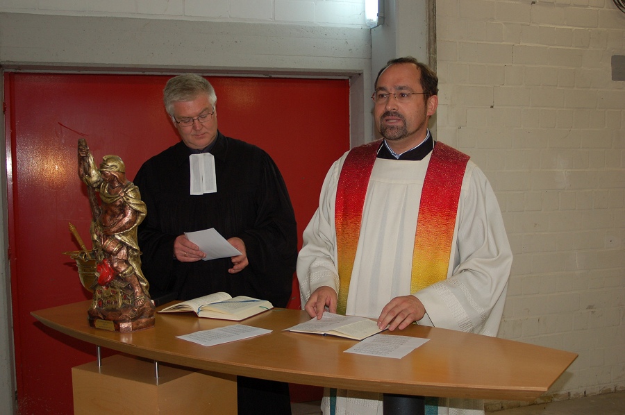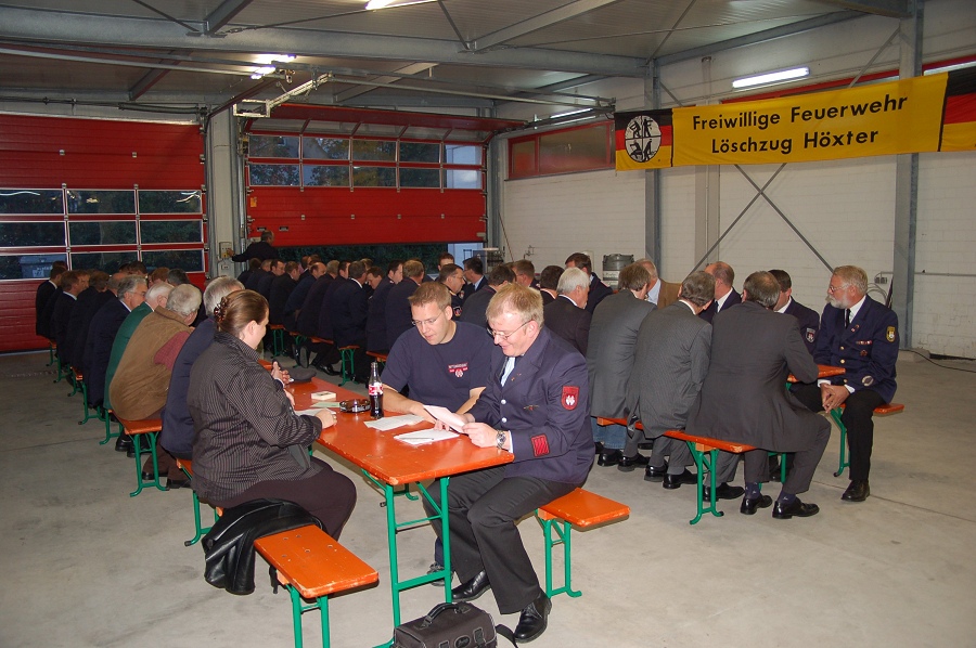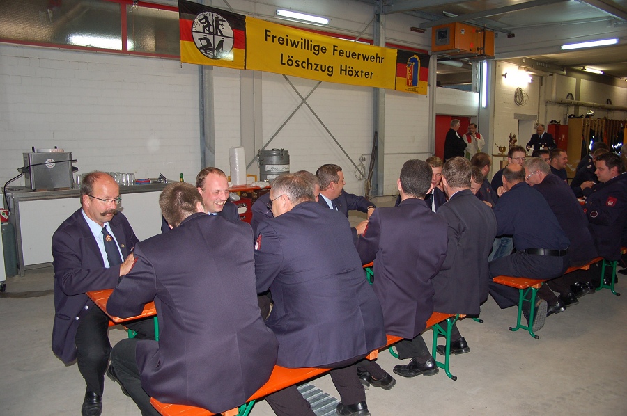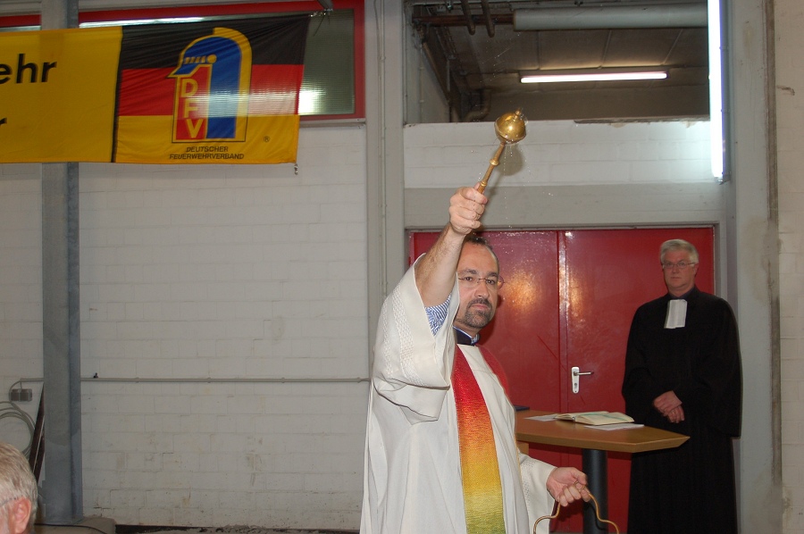 Trotz des Umzuges in eine neue Rettungswache reichte der freigewordene Platz nicht lange aus, was den 120m² großen neuen Anbau nun so dringend nötig machte, so Schumacher. Stadtbrandinspektor Stefan Dickel sprach ein großes Lob für die Kameraden aus, die etliche Stunden Eigenleistung in den Bau investiert haben und dabei einen enormen Teil der Baukosten eingespart haben. Er dankte auch der Stadt und dem Kreis Höxter für die Investitionen, die trotz eines engen Finanzhaushaltes getätigt wurden. Ihren kirchlichen Segen sprachen Dechant Andreas Kurte und Dechant Dieter Maletz dem neuen Hallenanbau aus. Löschzugführer Georg Beverungen wies am Ende der Veranstaltung noch auf das bevorstehende Oktoberfest des Löschzuges Höxter an diesem Wochenende hin. Dabei soll die neue Halle gebührend gefeiert werden, so Georg Beverungen.