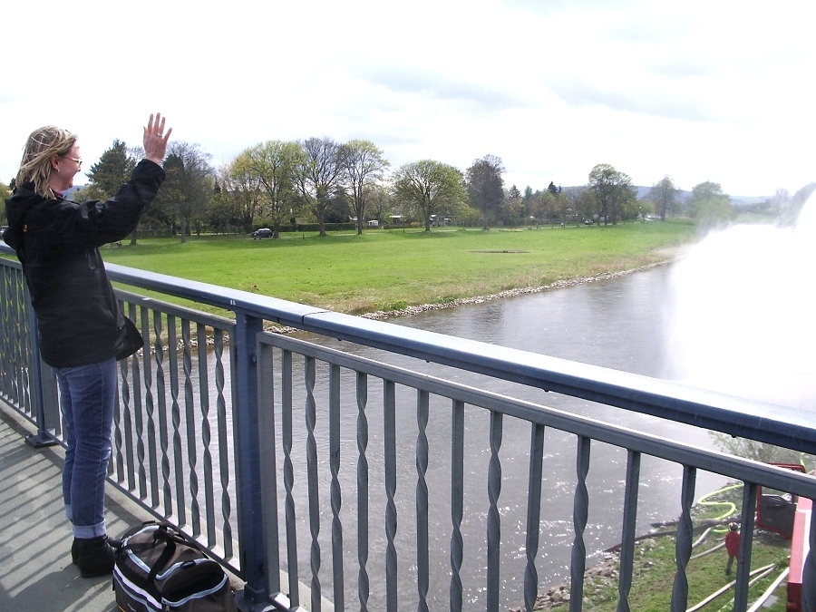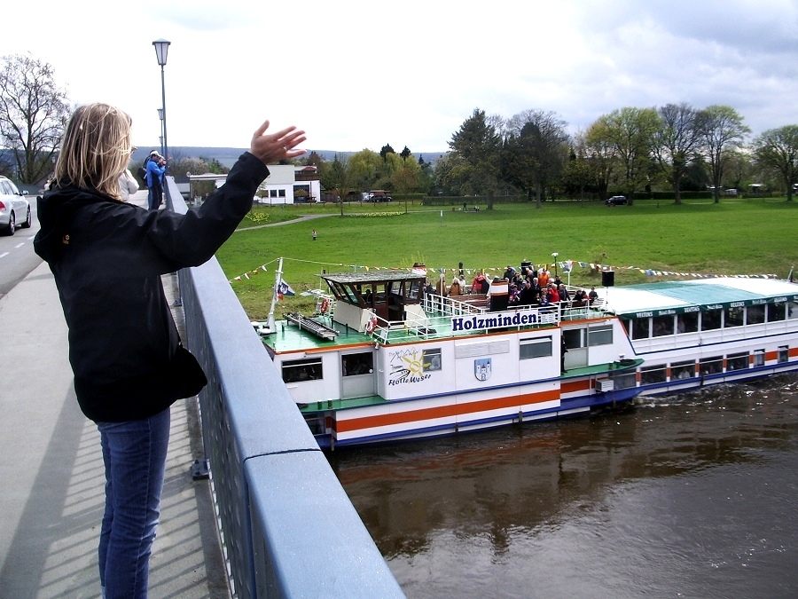 Viele der Passagiere zeigten sich begeistert von der Begrüßung und jubelten und winkten den ebenfalls winkenden Feuerwehrleuten zu. Blaulicht und Martinshorn wurden als Begrüßungsritual natürlich wieder eingeschaltet. Der Löschzug Höxter war mit dem LF 16-TS, dem Schlauchwagen, dem Tanklöschfahrzeug TLF8/18 und dem Kommandowagen vor Ort.