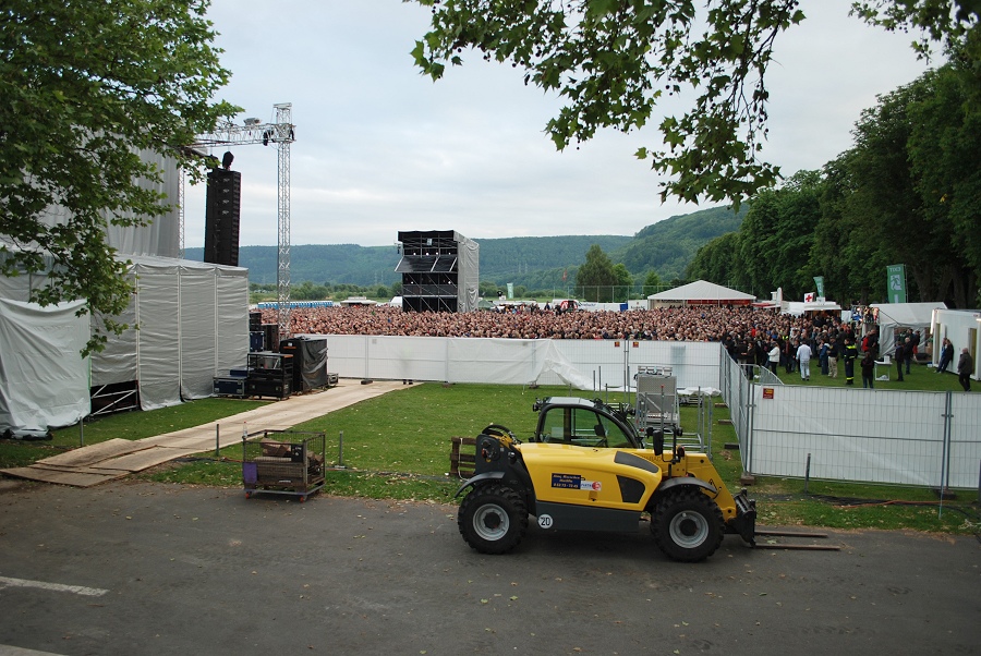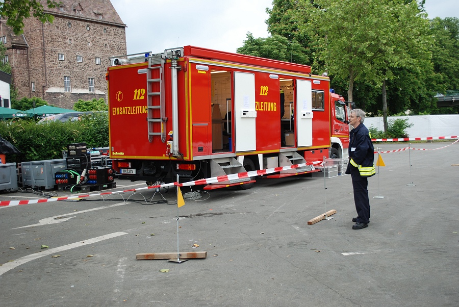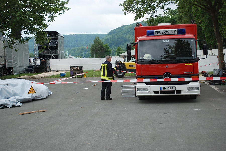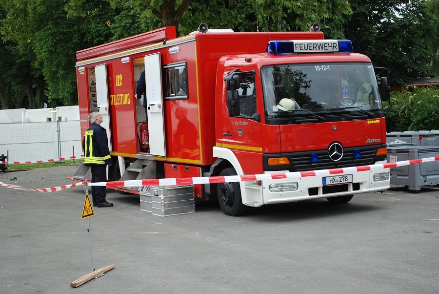 Beverungen / 02.06.2012 (NW/TKu) Mit dem Einsatzleitwagen (ELW-2) des Kreises Höxter waren vier Kameraden des Löschzuges Höxter backstage beim Herbert-Grönemeyer-Open-Air-Konzert in Beverungen vor Ort, um das dortige Koordinierungsteam, bestehend aus Führungskräften der Feuerwehr, der Polizei, des Rettungsdienstes und der zuständigen Ordnungsbehörde, zu unterstützen. Das ELW-2-Team leistete die technische Unterstützung als Führungsfahrzeug. Kleinere Einsätze auf dem Gelände wurden über die beiden ELW-1 der Feuerwehr Beverungen sowie des Rettungsdienstes des Kreises Höxter koordiniert. Die Neue Westfälische beschreibt die Konzert-Stimmung folgendermaßen: