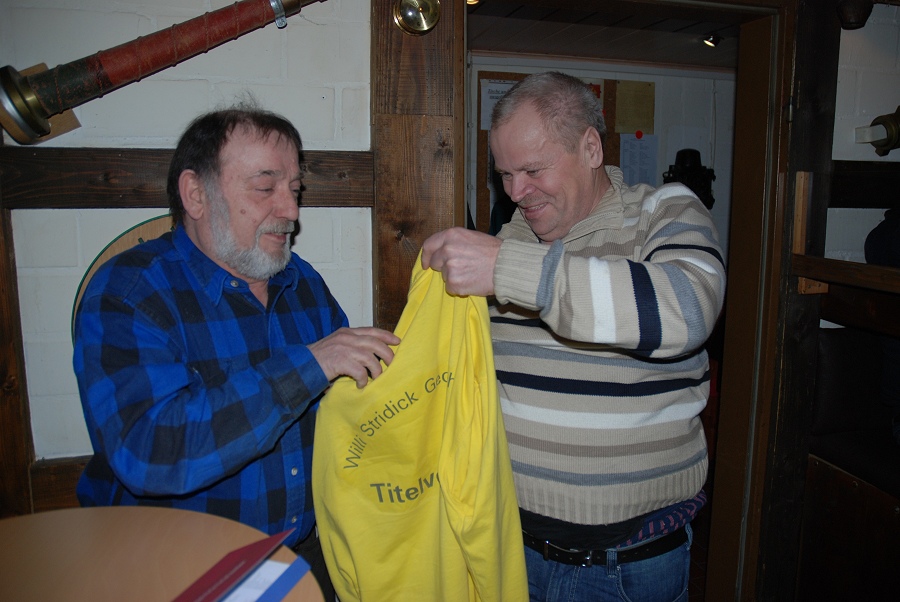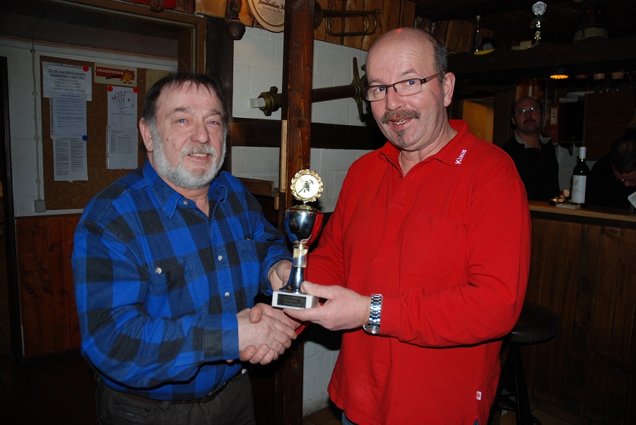 Sieger des Preisskat-Turniers 2013: Peter Nostiz. Klaus Henniges (rechts) überreicht ihm den Willi-Stridick-Gedächtnispokal