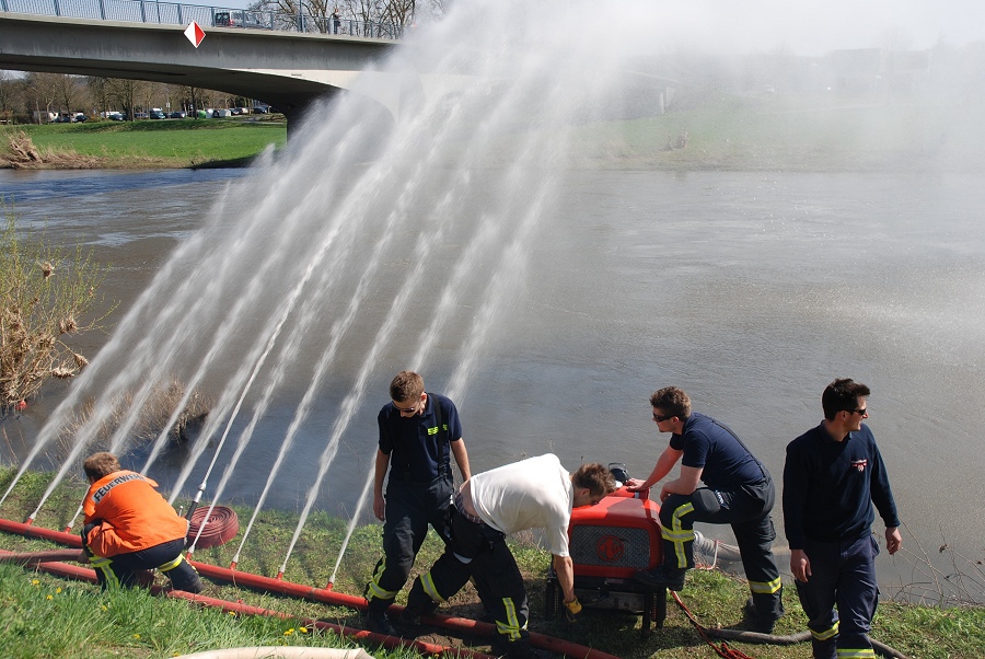 Drei Feuerlöschkreiselpumpen waren für Speisung der großen Wasser-Fontänen von Nöten. Nach den Wasserspielen wurde an Ort und Stelle noch kameradschaftlich gegrillt, um das schöne Wetter auszunutzen. Der Löschzug Höxter war mit dem LF 16-TS, dem Schlauchwagen, dem Tanklöschfahrzeug TLF2000 vor Ort. Für das TLF2000 war es der letzte Einsatz bei den Wasserspielen. Das alte TLF2000 auf Unimog-Fahrgestell wird in Kürze durch ein modernes TLF3000 ersetzt.