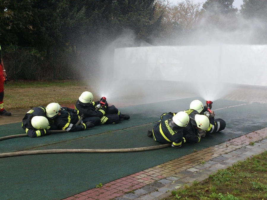 Strahlrohrtraining einer Gruppe aus Nordhausen