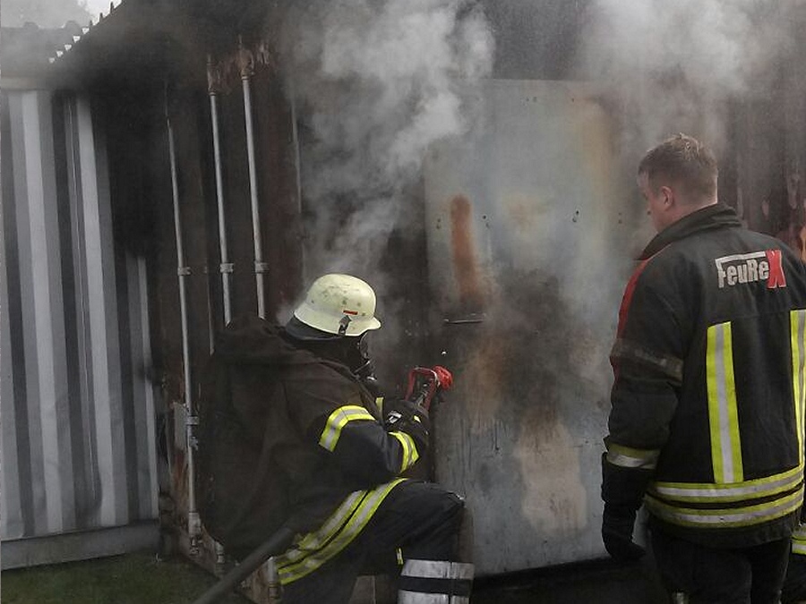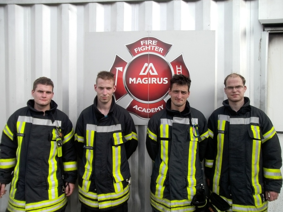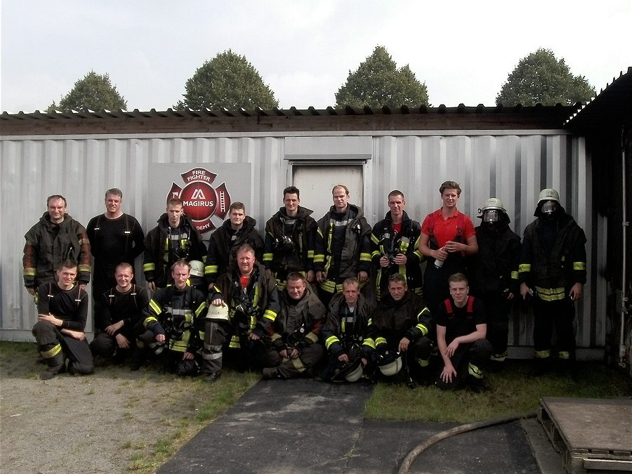 Helmstedt / 20.09.2014 (TKu). Vier Kameraden des Löschzuges Höxter haben an der Magirus-Fire-Academy in Helmstedt ein Hot-Fire-Training absolviert. Beim Hot-Fire-Training handelt es sich um eine Realbrandausbildung. Dabei wurden die Teilnehmer in feststoffbefeuerten Brandcontainern mit realen Einsatzbedingungen konfrontiert. Temperatur- und Sichtverhältnisse entsprechen einem echten Zimmerbrand. Bei der Ausbildung sind folgende Ausbildungsziele definiert worden: Richtiges und sicheres Vorgehen unter Hitzestress, Bewertung und Einschätzung von Gefahrensituationen, Richtiger Umgang mit Strahlrohren, Wärmegewöhnung, Eindringen und Arbeiten in Räumen unter einsatzrealistischen Temperatur- und Sichtbedingungen sowie Richtiges und sicheres Eindringen in brandbeaufschlagte Räume.