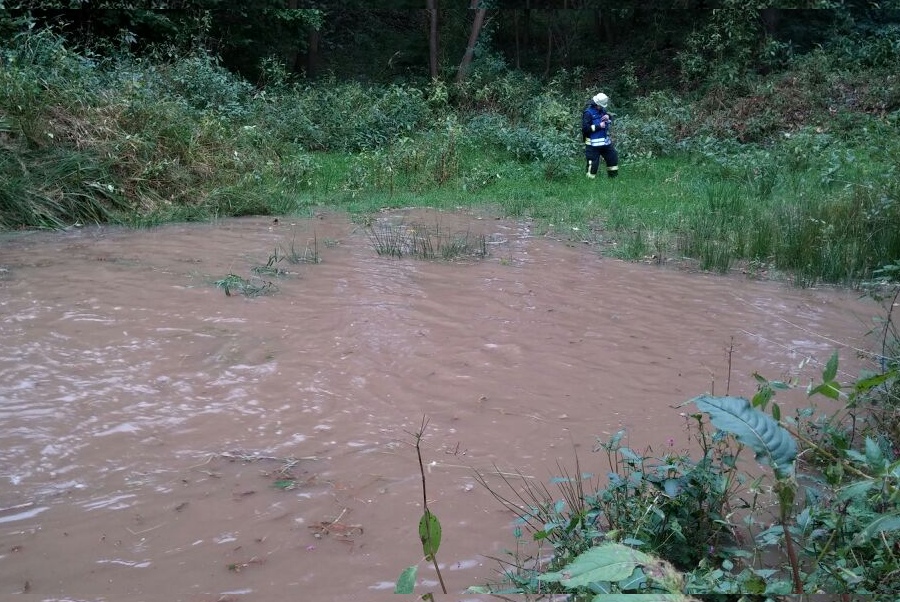 Zwei Ausgleichsbehälter wurden ebenfalls in Stellung gebracht, außerdem fuhren drei Tanklöschfahrzeuge stetig im Pendelverkehr Wasser bis zur vermeintlichen Einsatzstelle. Feuer gelöscht - Übung erfolgreich absolviert resümierten die Zugführer Holger Dittrich und Jürgen Schmits anschließend! Die Übung wurde dazu genutzt um einen ausgetrockneten Teich im Wald wieder mit Wasser zu füllen.