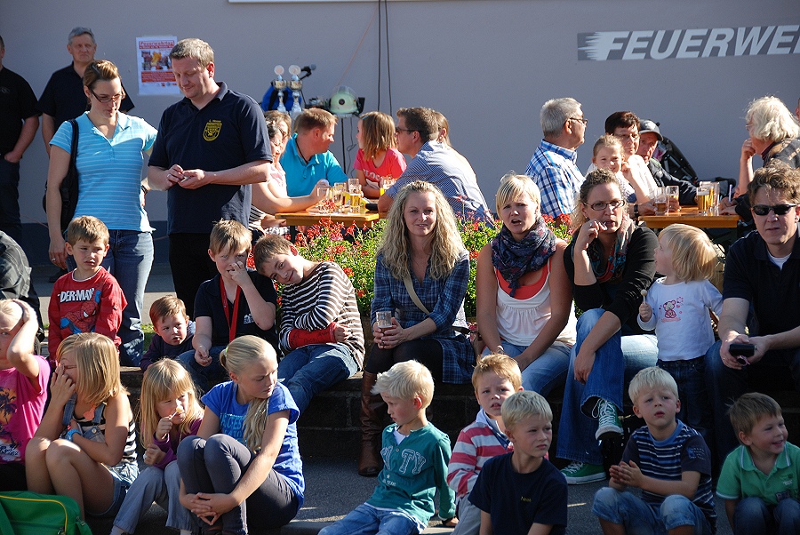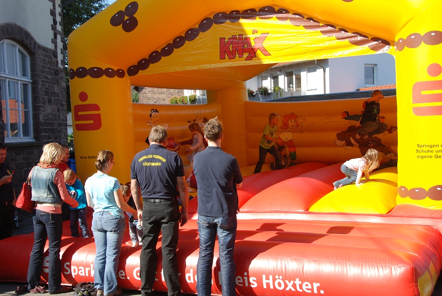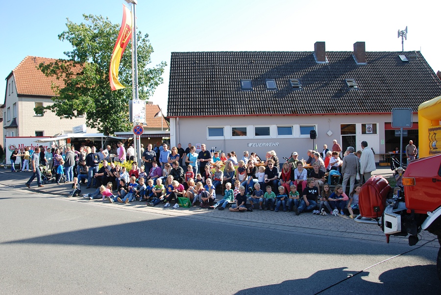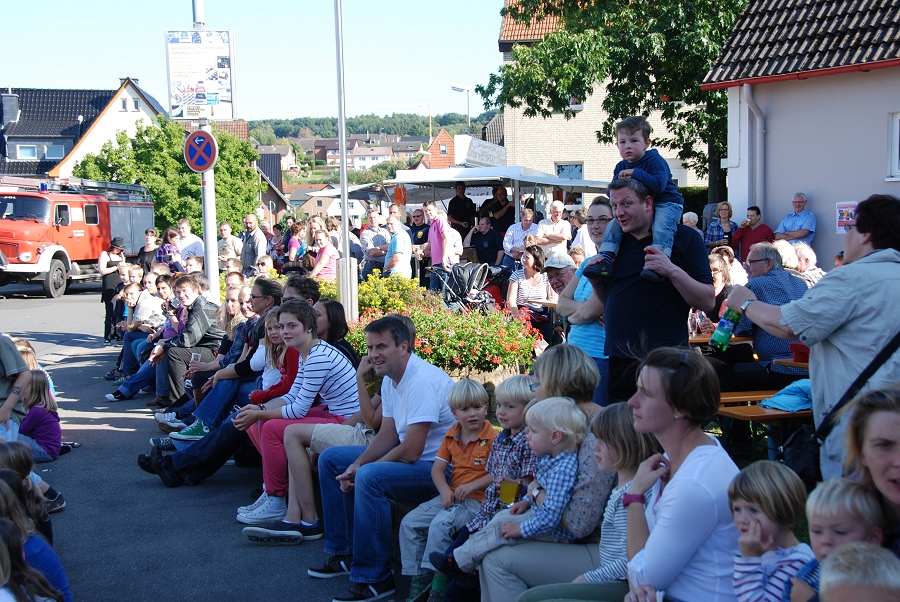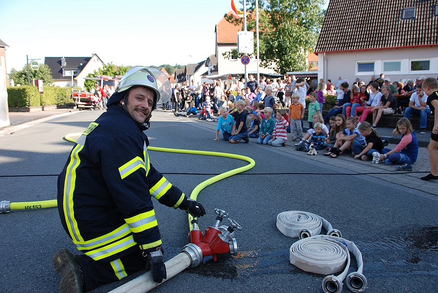 Pokale und Urkunden für Wandergruppen und einzelne Teilnehmer überreichte anschließend Löschgruppenführer Andreas Bohnenpoll mit seinem Stellvertreter Andreas Klie. Die größte Wandergruppe stellte die "Gruppe Hillebrecht" aus Lüchtringen mit 11 Personen, größte Wandergruppe der Feuerwehr war die Löschgruppe Amelunxen mit 10 Personen. Als älteste Teilnehmerin wurde die 78-jährige Helga Beverungen aus Lüchtringen ebenfalls mit einem Pokal und einer Urkunde geehrt. Jüngster Teilnehmer war der zwei Jahre und drei Monate alte Benedikt Kube aus Höxter. Als jüngster Mitwanderer überreichte ihm Andreas Bohnenpoll eine Geschenketasche. Neben einer Fahrzeugausstellung, begeisterten eine Hüpfburg, Wasserspiele sowie Rundfahrten mit dem Feuerwehrauto vor allem die kleinen Besucher. Für die musikalische Unterhaltung zwischendurch sorgte der Spielmannszug Lüchtringen.
