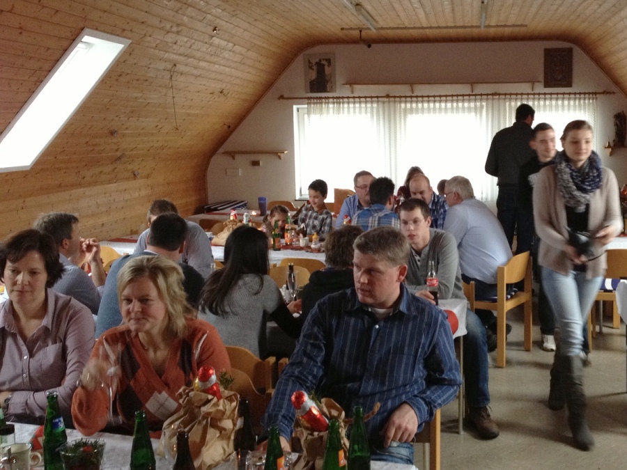 Lüchtringen / 16.12.2012 (TKu) Das Jahr geht zuende! Löschgruppenführer Andreas Bohnenpoll bedankte sich nun beim ersten Adventsfrühstück der Löschgruppe Lüchtringen bei allen aktiven Kameraden und deren Familien für ihr Engagement und die Unterstützung in diesem Jahr. 38 Erwachsene und 13 Kinder haben sich Sonntag, den dritten Advent im Feuerwehrgerätehaus Lüchtringen eingefunden, um gemeinsam besinnlich zu feiern. Höhepunkt des Frühstücks war der überraschende Besuch des Nikolauses. Für die Kinder hatte der Nikolaus Geschenktüten dabei.