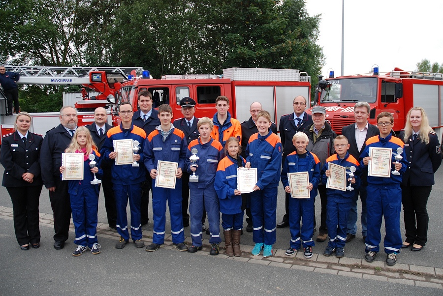 Foto von links (vorne): Melinda, Gerrit, Nico, Lukas, Nina, Julian, Ben, Nathaniel, Pascal - Hintere Reihe von links: Katharina Loges (stellv. Samtgemeinde-Jugendwartin), Dirk Siefarth (stellv. Kreisjugendwart), Andreas Topp (Gemeindebrandmeister), Steffen Brandt (stellv. Kreisjugendwart), Heinz Weißfinger, Phillip Müller, Andreas Meilenbrok (Ortsbrandmeister Boffzen), Tobias Weißfinger (Jugendwart), Horst Menzel, Torsten Lachmann (Samtgemeindeverwaltung), Sarah Uhlmann (stellv. Jugendwartin)