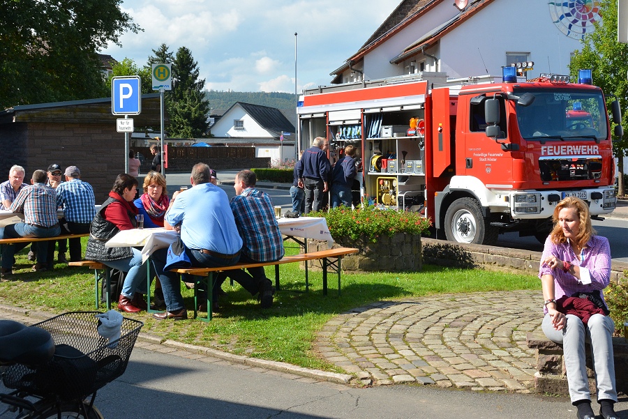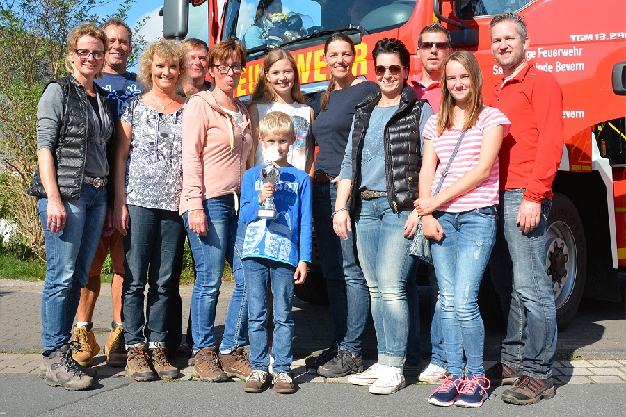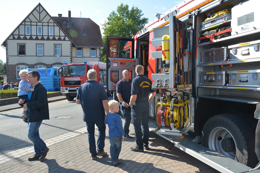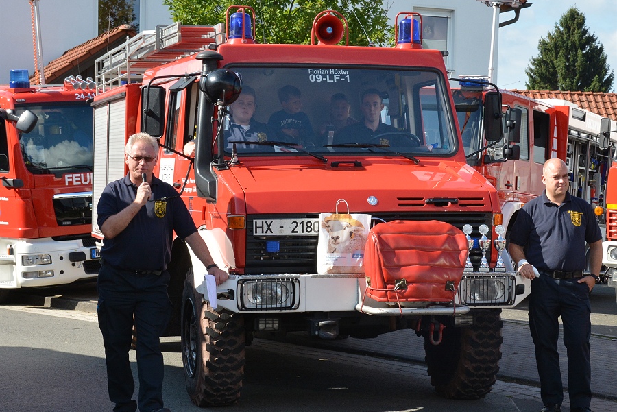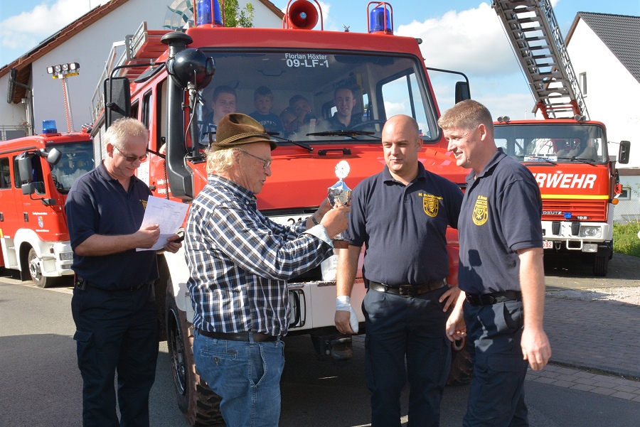 Mit 73 Jahren war Horst Schöning aus Falkenhagen der älteste Teilnehmer. Schöning erhielt dafür einen Pokal von Löschgruppenführer Bohnenpoll überreicht. Weitere Pokale gingen an die größten Wandergruppen, die Löschgruppe Amelunxen und die Familiengruppe Steiner-Nolte-Ebeling. Eine kleine Fahrzeugschau gab es rund um das Feuerwehrgerätehaus Lüchtringen zu bestaunen und für die Kinder standen eine Hüpfburg und Kinderspiele bereit.