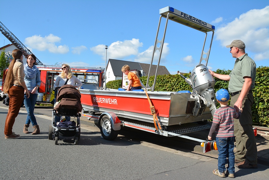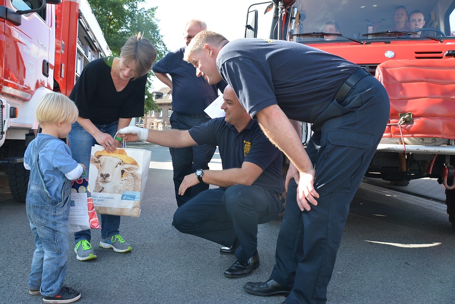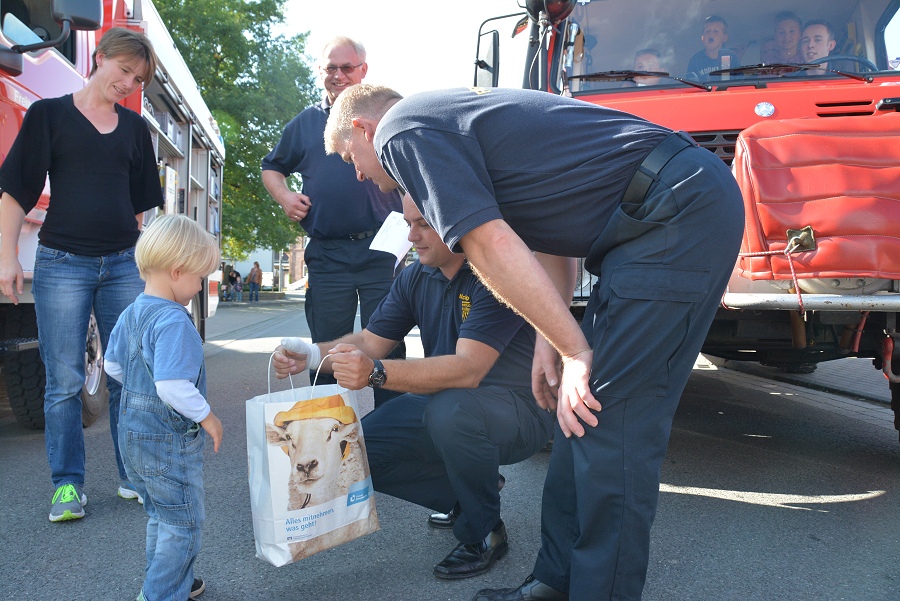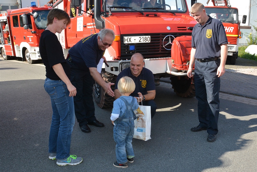 Lüchtringen / 14.09.2014 (TKu) Bereits zum 27. Mal hat die Löschgruppe Lüchtringen ihren traditionellen Volkswandertag durch den Solling in Verbindung mit einem Tag der offenen Tür veranstaltet, bei dem einzelne Wanderer und Gruppen mit Pokalen ausgezeichnet wurden. Mit nur zweieinhalb Jahren war Leonhard Weißbrich aus Lüchtringen der jüngste Mitwanderer. Löschgruppenführer Andreas Bohnenpoll überreichte ihm dafür eine Geschenktasche, die der kleine Leonhard mit strahlenden Augen entgegennahm.