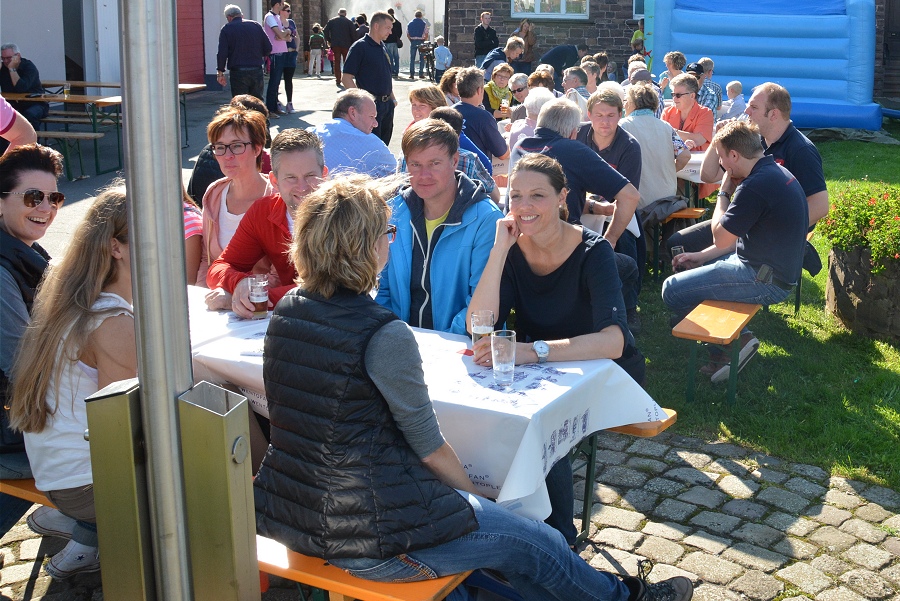 Kinderspiele wie Spritzwand und Dosenwerfen rund um das Feeuerwehrgerätehaus