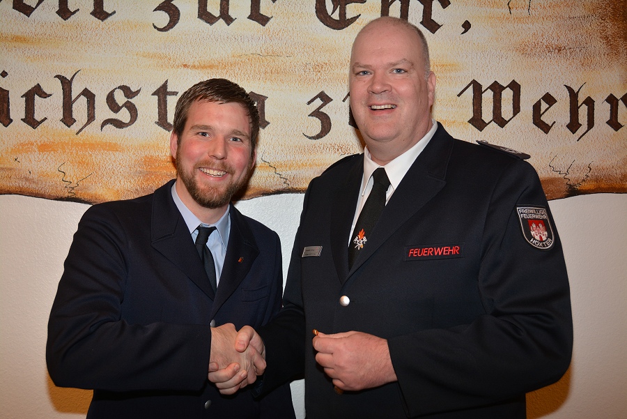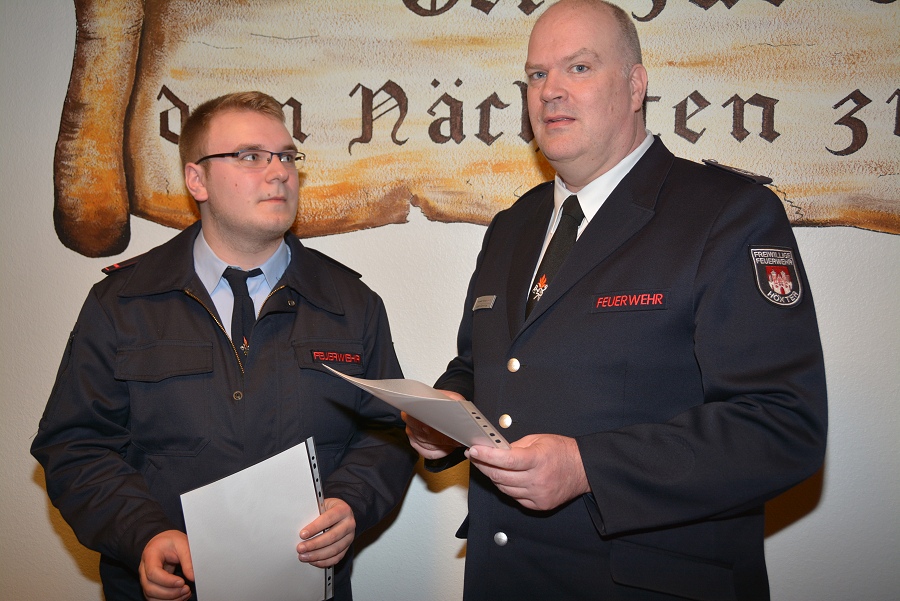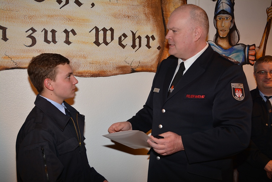 Tim Mönnekes wird zum Feuerwehrmann-Anwärter ernannt