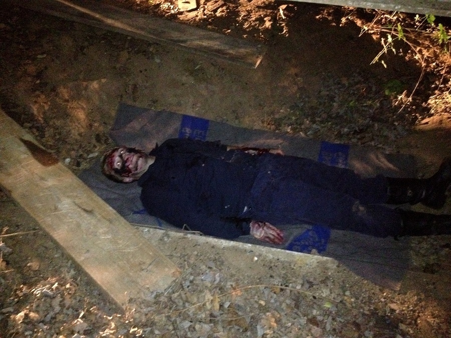 Dazu wurden die Verletzten realitätsnah geschminkt, um die Übung so echt wie möglich aussehen zu lassen. Unter der Einsatzleitung von THW-Zugführer Holger Hoffmann und Löschgruppenführer Norbert Spieker startete die Nachtübung gegen 20:30 Uhr. Die erste verletzte Person konnte in einem alten Kipplaster ausfindig gemacht werden. Diese hatte schwere Brandwunden und Schnittverletzungen, zudem klagte sie über Rückenschmerzen. Das THW errichtete vor dem Kipplaster eine Arbeitsbühne, um die verletzte Person darüber schonend und sicher aus dem Lkw zu retten. Unter tonnenschweren Stahlteilen fanden die Helfer eine weitere Person. Sie hatte einen offenen Unterschenkelbruch und wurde mit Hilfe des Spreizers aus der misslichen Lage befreit und den Sanis übergeben. Einen dritten Verletzten fanden sie unter einem alten Gebäude. Diese Person hatte schwere zu erkennende Verletzungen. Problematisch für die Rettung war der Zustand des Gebäudes, welches durch die Explosion schwere Schäden davongetragen hatte und einsturzgefährdet war.