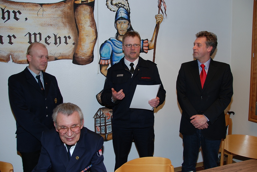 Lütmarsen / 02.02.2013 (TKu) Gleich sechs Neueintritte hatte die Löschgruppe Lütmarsen in den vergangenen Monaten zu verzeichnen. "Das ist für Lütmarsen ein wahrer Glücksfall", verkündete Hauptbrandmeister Norbert Spieker auf der Jahreshauptversammlung der Löschgruppe im Feuerwehrgerätehaus. Stadtbrandinspektor Norbert Rode stellte fest, dass es auch insgesamt ein erfolgreiches Jahr für die Löschgruppe Lütmarsen gewesen sei. Als wichtige Neuerung gab er bekannt, dass in der Großgemeinde Höxter nur noch bei größeren Einsatzlagen per Sirene alarmiert wird, um die Bürger so selten wie möglich damit zu belästigen und Nachts nicht aufzuwecken.