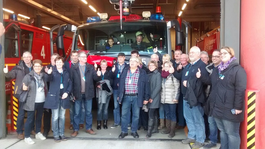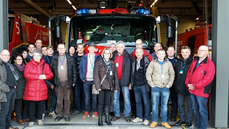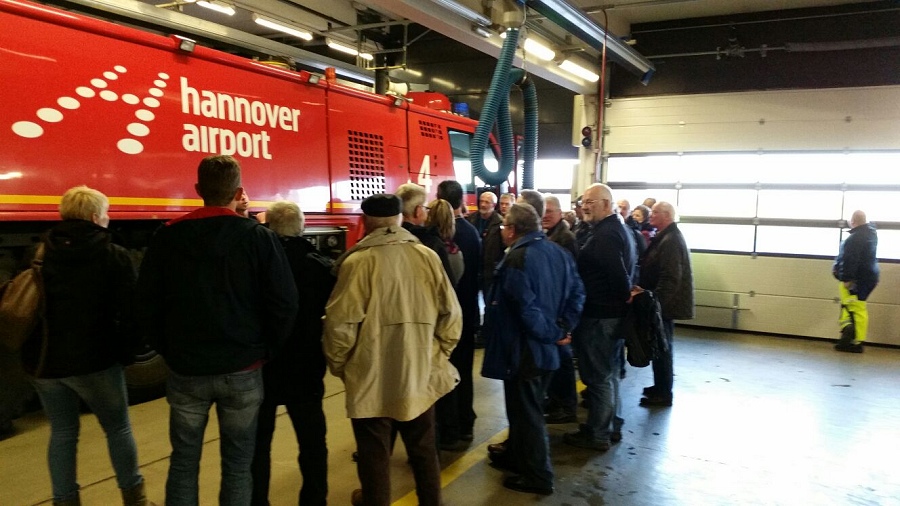 Hannover-Stahle / 28.11.2015 (TKu/Airp). Gemeinsam mit ihren Familienangehörigen besichtigte die Löschgruppe Stahle mit 50 Personen zum Jahresabschluss die Flughafenfeuerwehr Hannover. Das Flugzeug gilt nach wie vor als das sicherste Verkehrsmittel der Welt. So ist es nicht erstaunlich, dass es seit der Gründung im Jahr 1952 am achtgrößten deutschen Flughafen Hannover bis heute keine ernsten Zwischenfälle gab. Doch bei über 5 Millionen Passagieren jährlich und durchschnittlich 220 Flugzeugbewegungen pro Tag wird es für die Feuerwehrleute nie langweilig. Pro Jahr sind sie fast 2000 Mal im Einsatz und - ohne die Feuerwehr läuft und vor allem fliegt am Hannover Airport nichts.