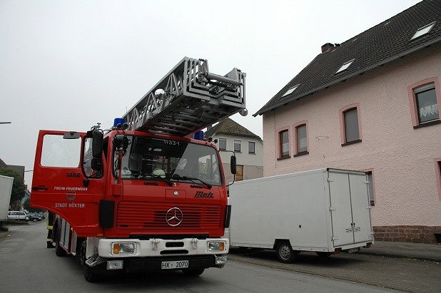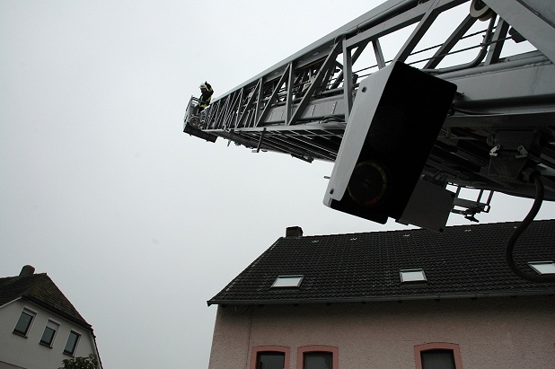 Drehleiter in Stellung gebracht (dabei Katze verscheucht)