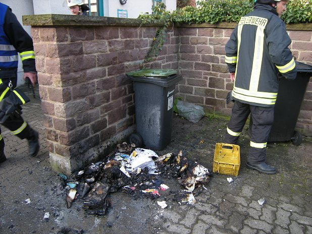 • Kleinbrand Papier und Abfall vor dem Postgelände