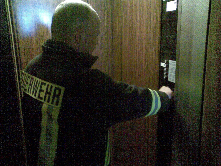 Über den Notrufbutton im Fahrstuhl mit der Aufzugszentrale Kontakt aufgenommen: Definitiv der gemeldete Aufzug