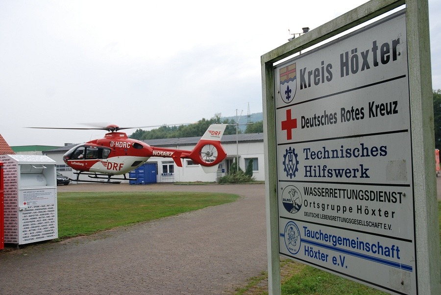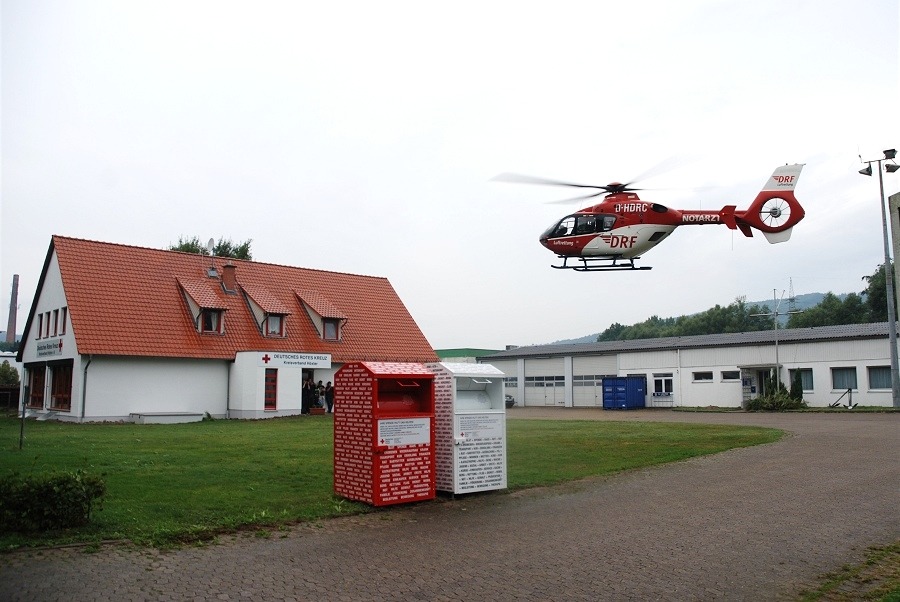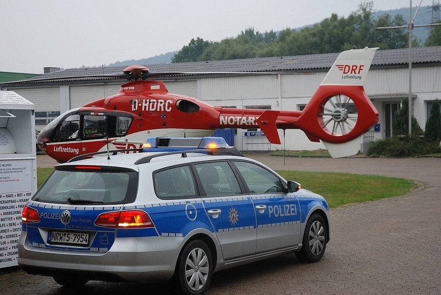 Tragehilfe geleistet beim Umlagern des Patienten vom Rettungswagen in den Rettungshubschrauber