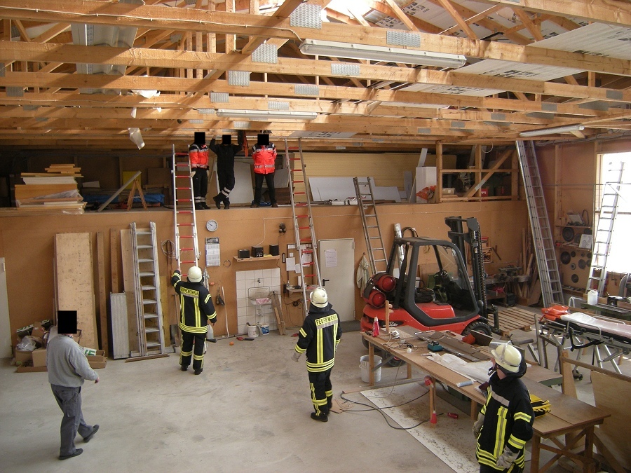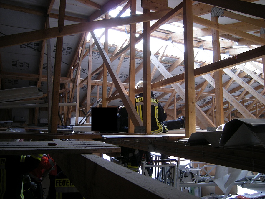 Eine Person einer externen Reinigungsfirma ist in einer Produktionshalle durchs Dach gebrochen und auf einer 3m tieferen Holzkonstruktion zum Liegen gekommen