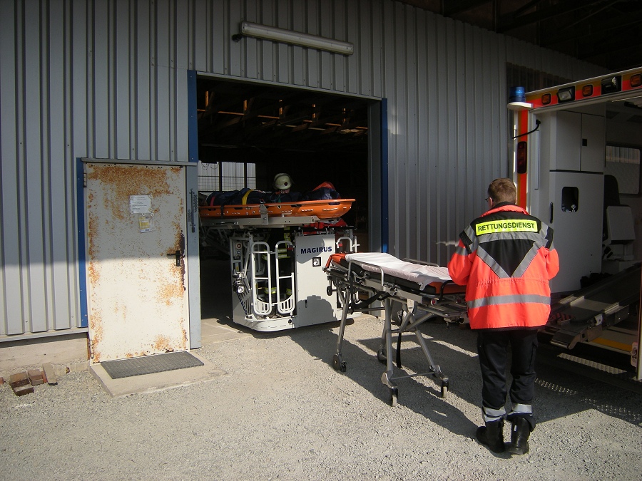 Schleifkorbtrage und Vakuummatratze nach oben transportiert