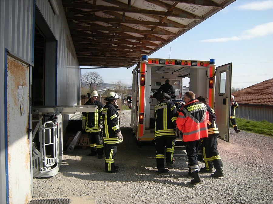 Sicherung und Versorgung der verletzten Person durch Einsatzkräfte des Rettungsdienstes und der LG Fürstenau