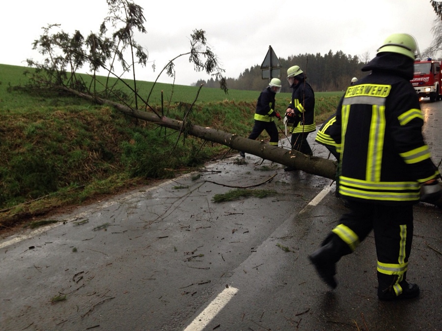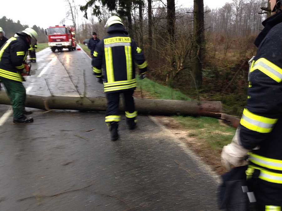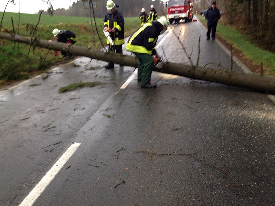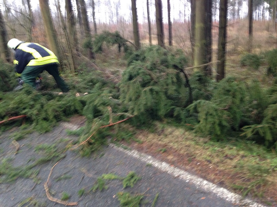 | Kurzbericht: | Mehrere umgestürzte Bäume auf der Straße |