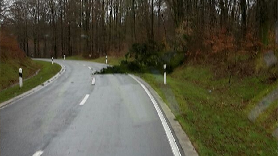 | Kurzbericht: | Umgestürzte Tanne halbseitig auf Fahrbahn |