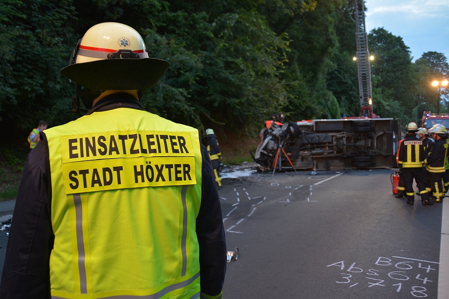 Sofortrettung des PKW-Fahrers gemeinsam mit dem Rettungsdienst mit Hilfe einer Schaufeltrage durchgeführt