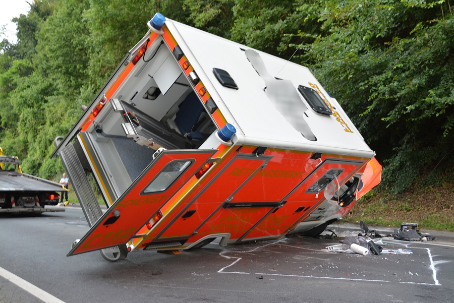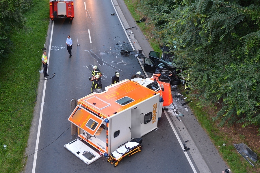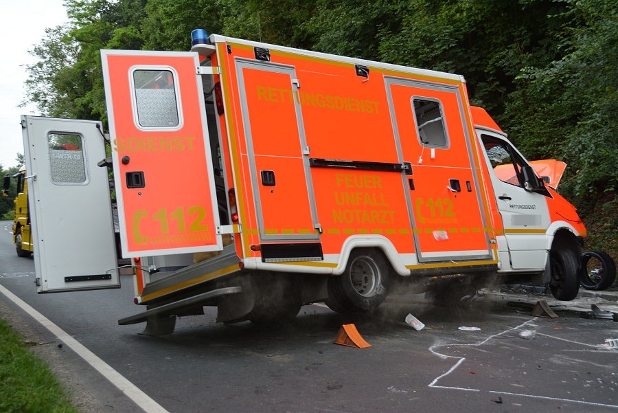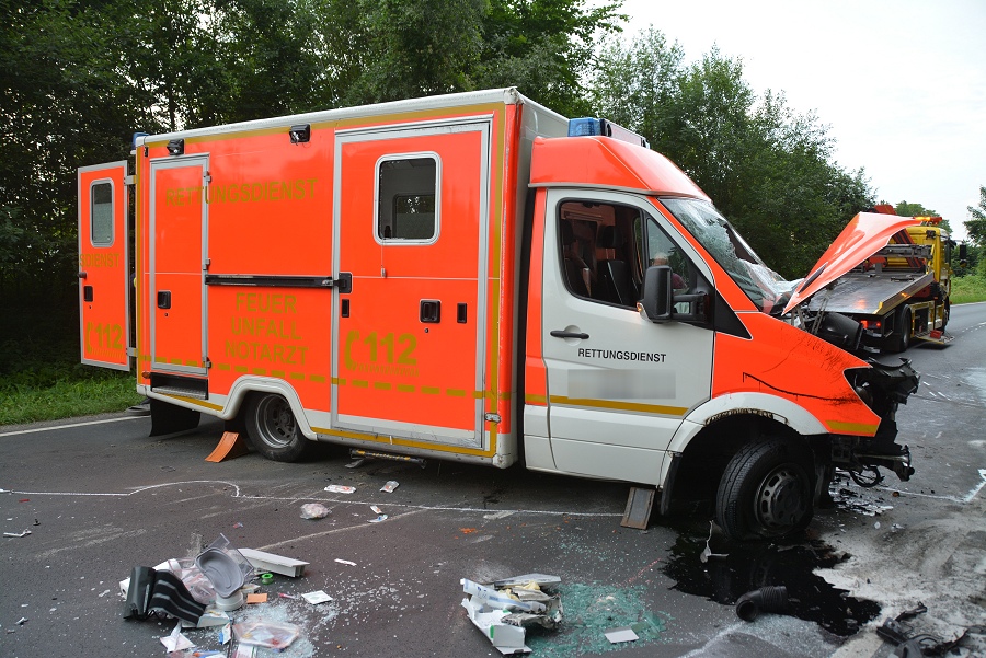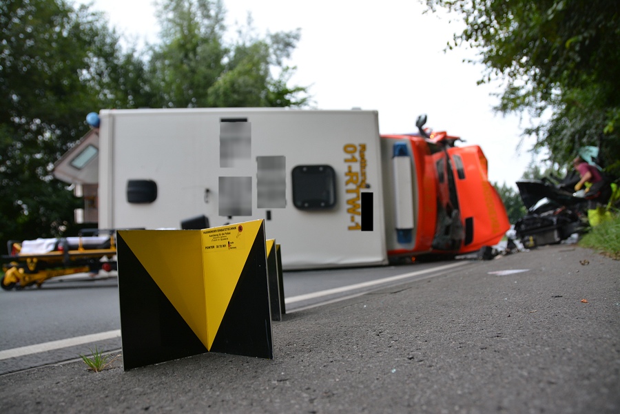 Verkehrsunfall zwischen Rettungswagen und PKW