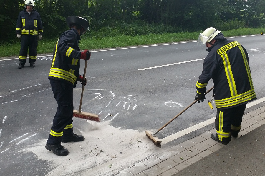 Hinweisschilder "Ölspur" auf beiden Fahrbahnen aufgestellt