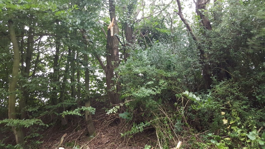 Abgebrochene Baumkrone hat sich im Baum verhakt